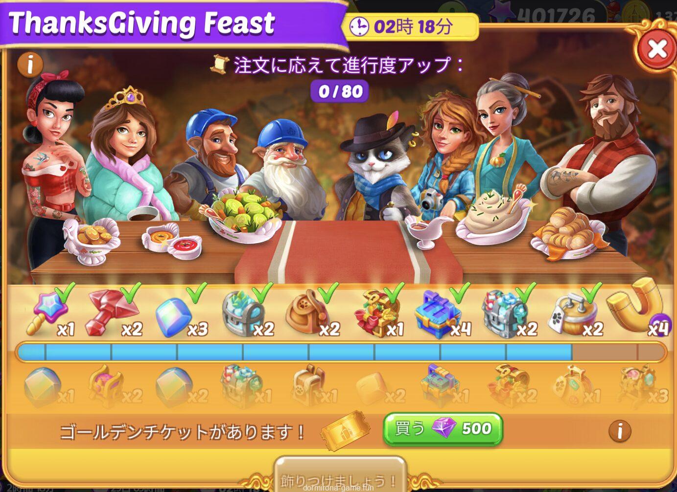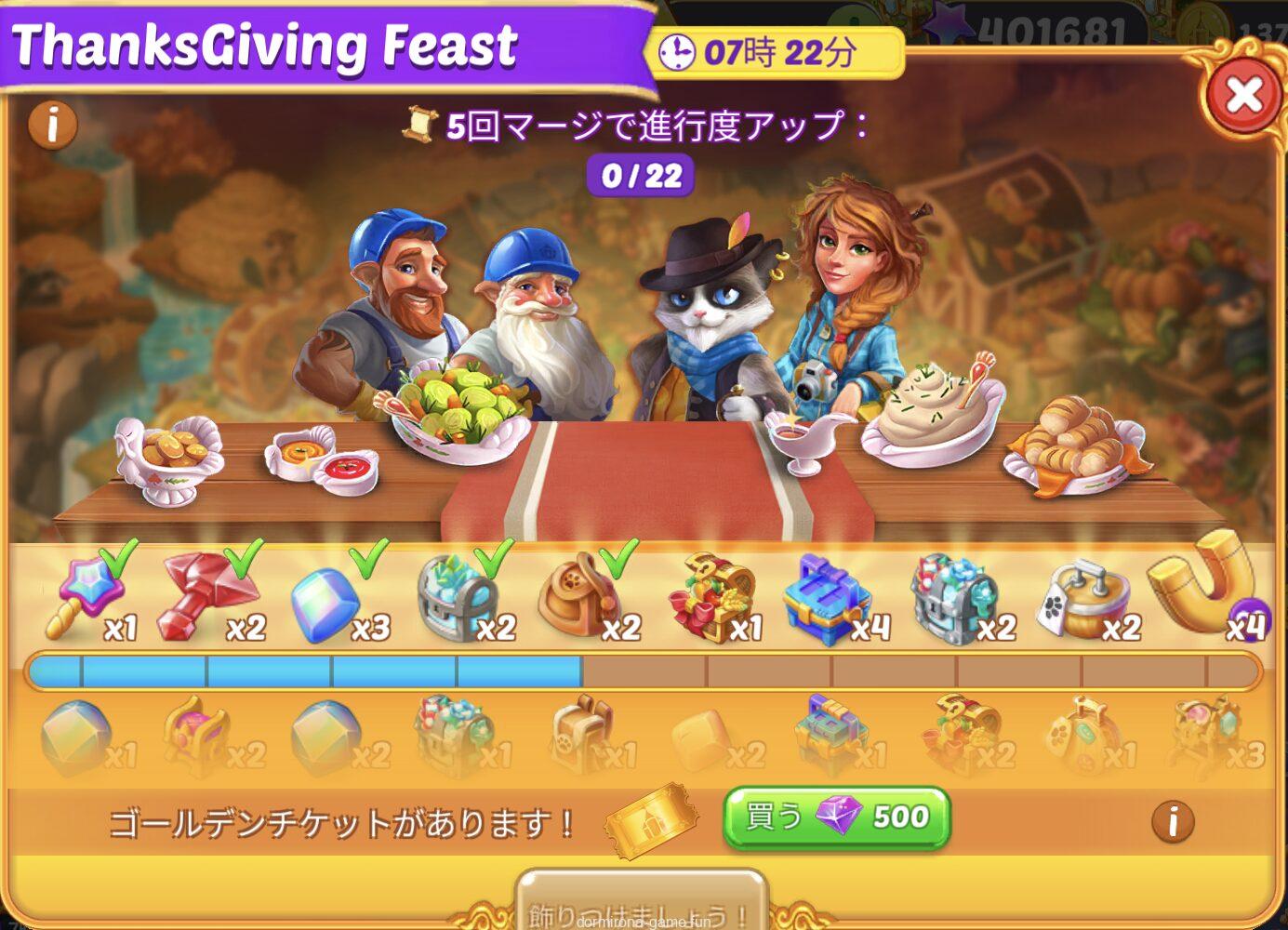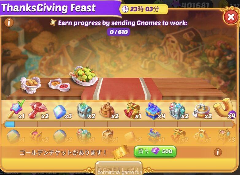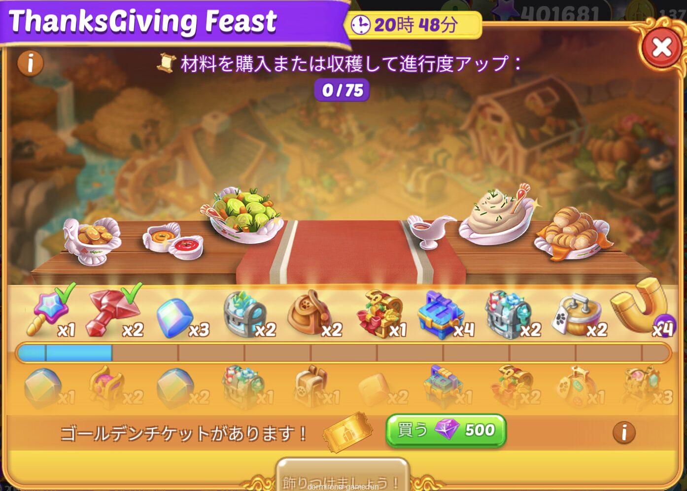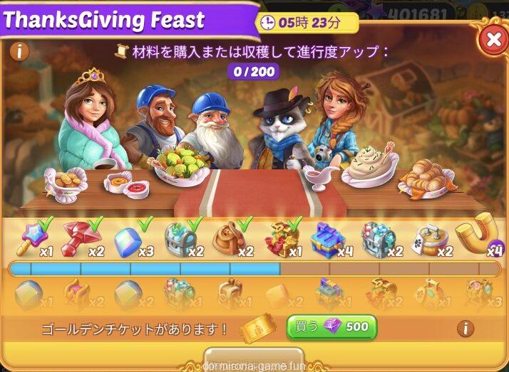 • 材料を購入または収穫して進行度アップ