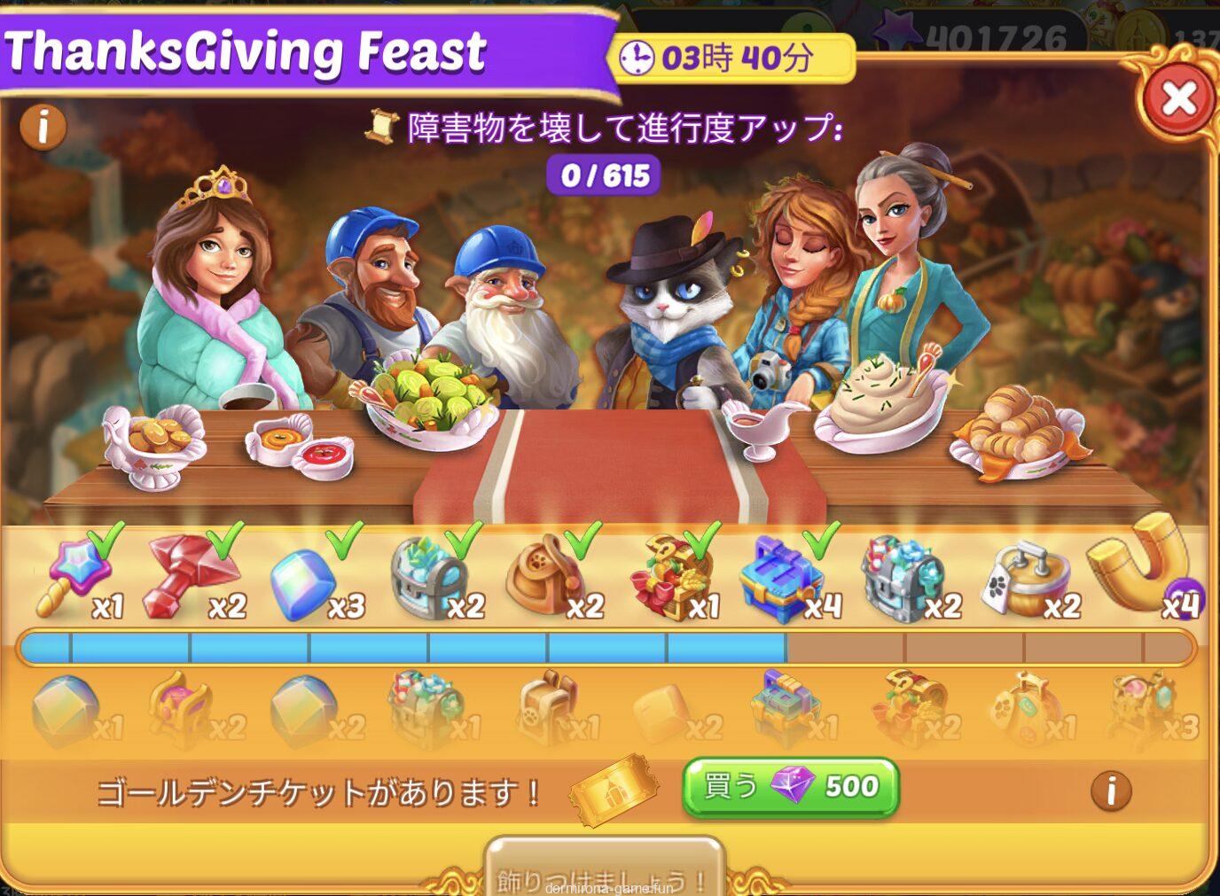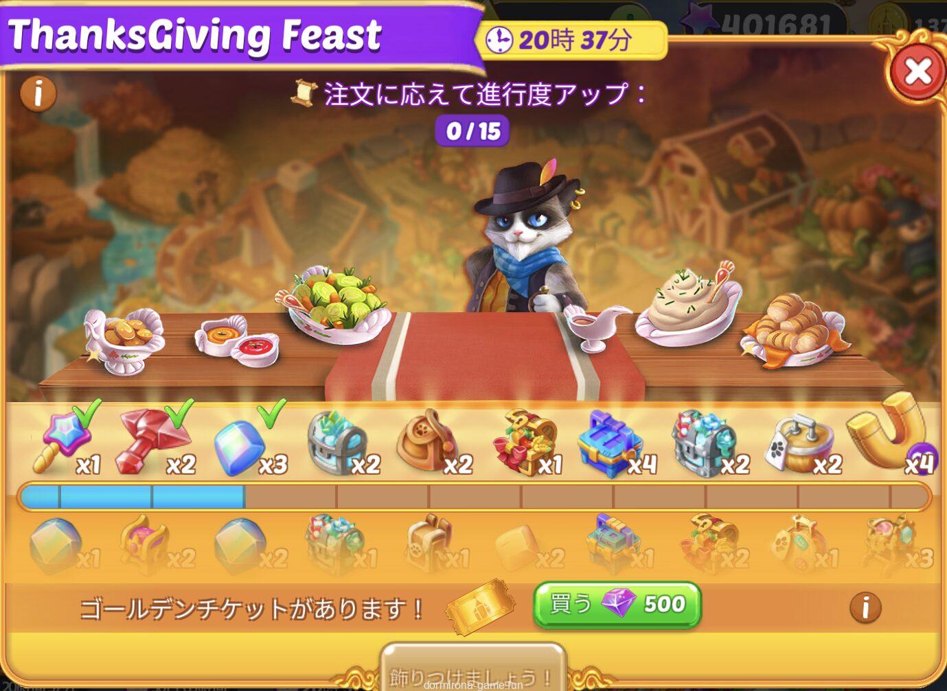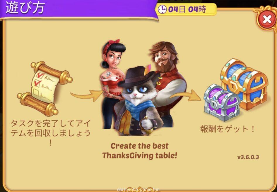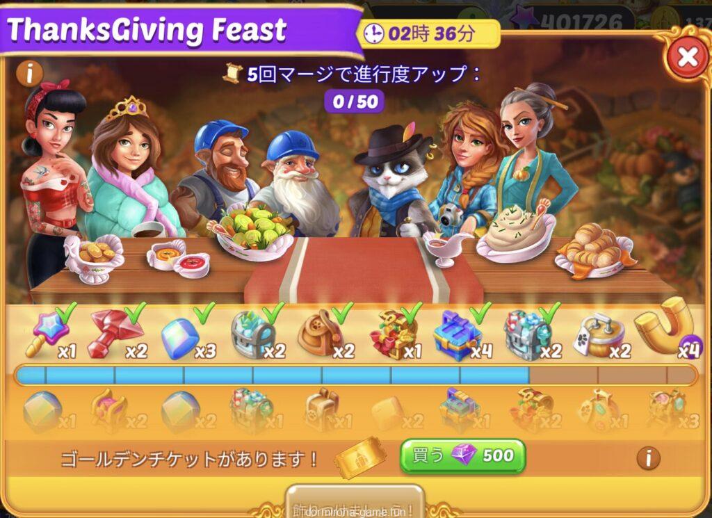 • 材料を購入または収穫して進行度アップ