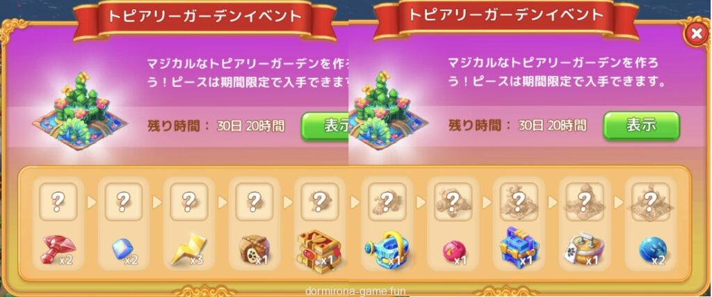 • 通常イベント、島イベントをクリアして報酬のトピアリーガーデン宝箱をもらう