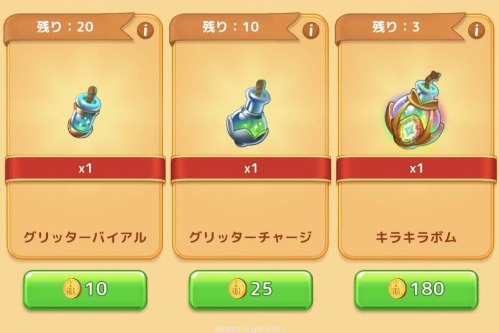 - 障害物を切り倒し、アイテムをマージするとグリッターボムのピースが出る