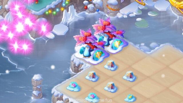 - 宝箱から出る冬の寒風のシーズナルピースをマージ、建設してエメラルドのポイントをGET!