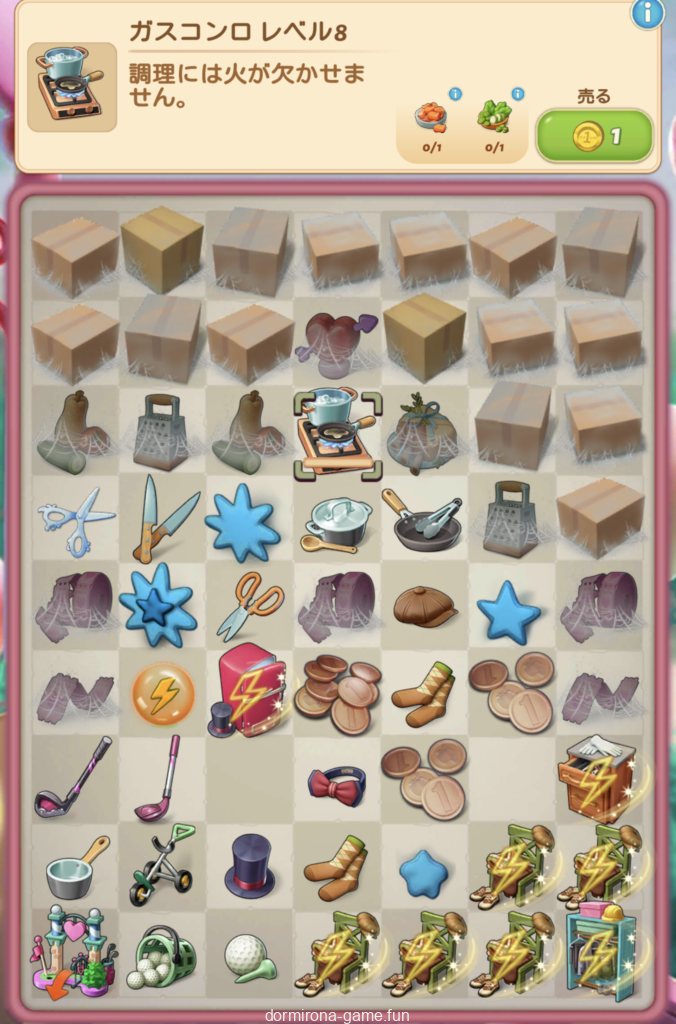 なんとなく把握。ゴルフコース3を納品する報酬でもらえるのをマージしてワードローブLv2にする。スーツからキッチンチェストor冷蔵庫だけどここが運ゲーと。