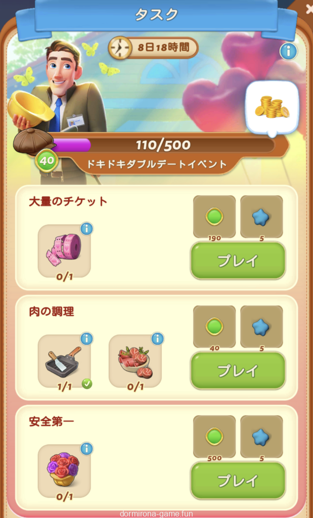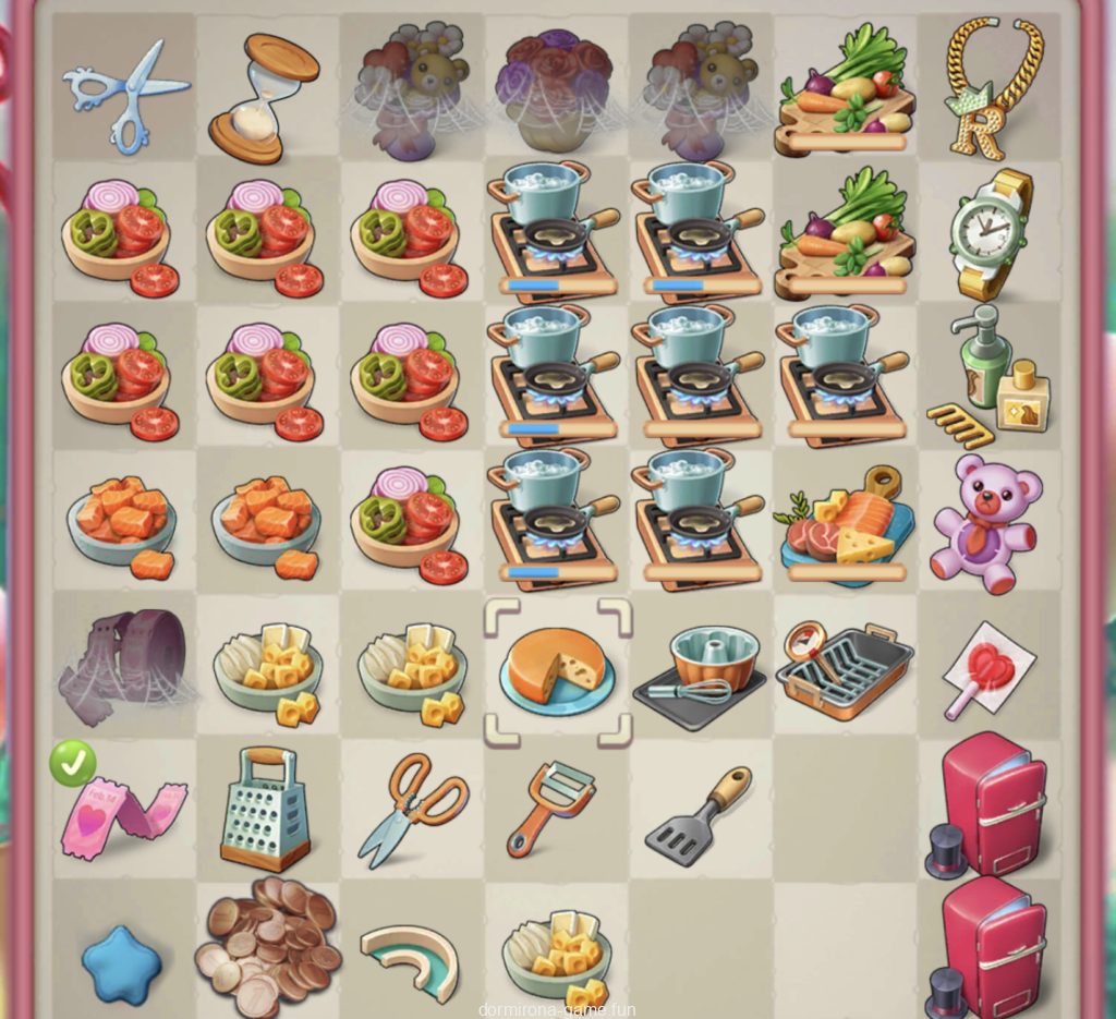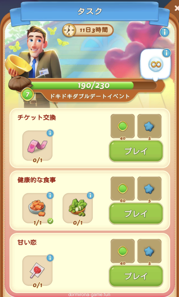 ようやくレタスと肉が出たのでコース料理をタスクで取られつつ、デザート完成、ロディーの鏡を再度作ってハサミ、楽過ぎる〜♡