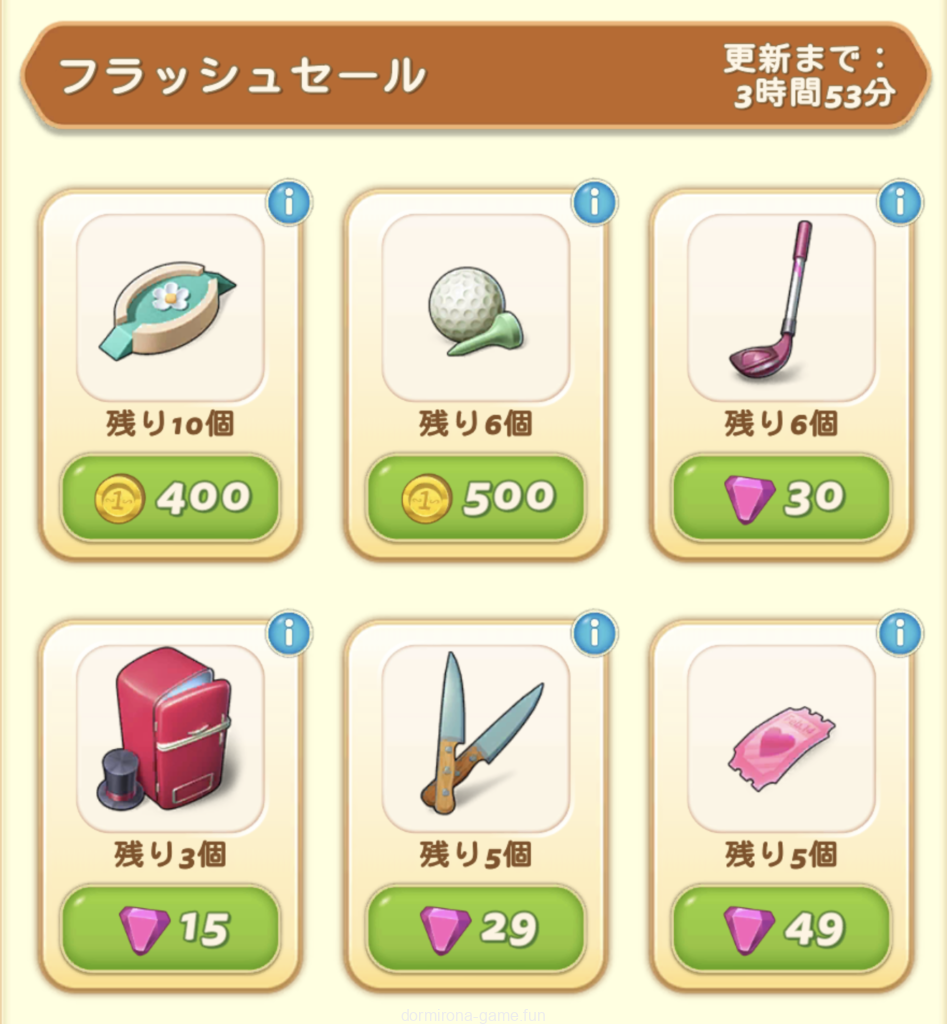 コインで買えるもの2個ずつ買ってみたけど、イベ盤ショップは買っても値上がりしないっぽい。ほぼ毎回ゴルフボール買ってました。