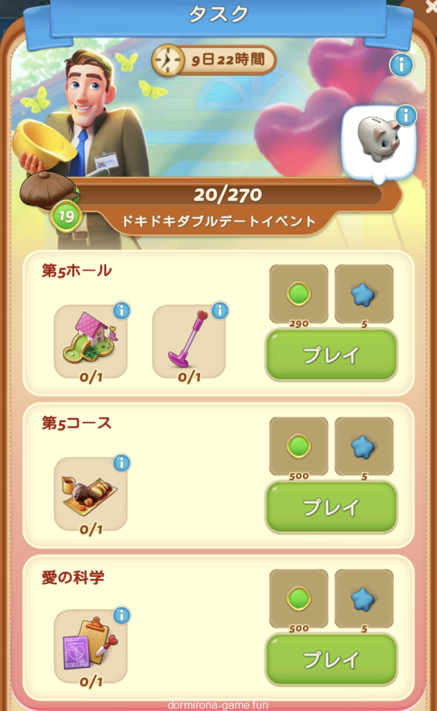 ガチャ失敗してワードローブが寝ちゃうのがきつい…その間にゴルフコース作れってか.