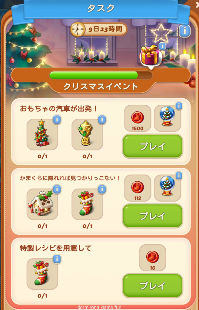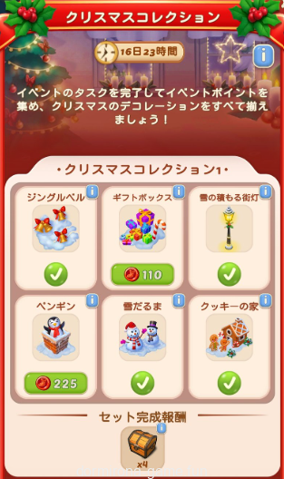 タスクのスクショほぼ残ってないけど上段で雪だるまから出るツリーとトロフィーのいかついタスクと中下段の小さいタスクって感じでした。