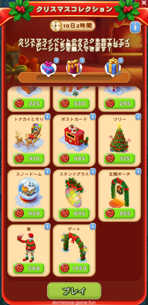 右:とにかく飾りが辛いよね。スノードームとか雪だるま取られて木の生産も軌道に乗ってたのに停滞気味。
