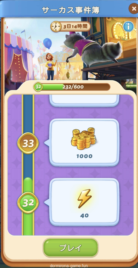 チケットマシーン→カーニバルのチケット→占い師のテントでマルザール完成。20×2しか出ないのか―。そんなこんなで32、まだ13%だって恐ろしい。