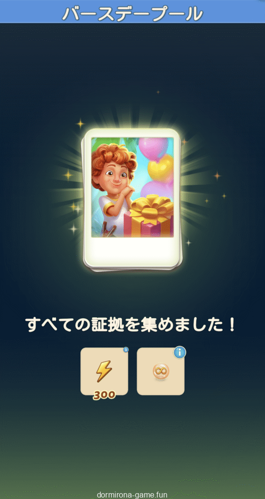 - 手がかりを集めるとセットごとに報酬がもらえる