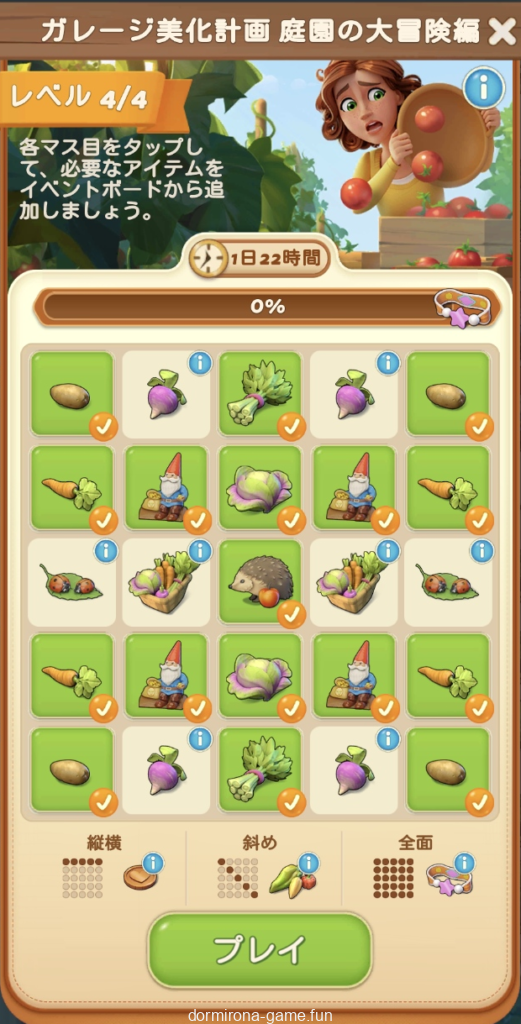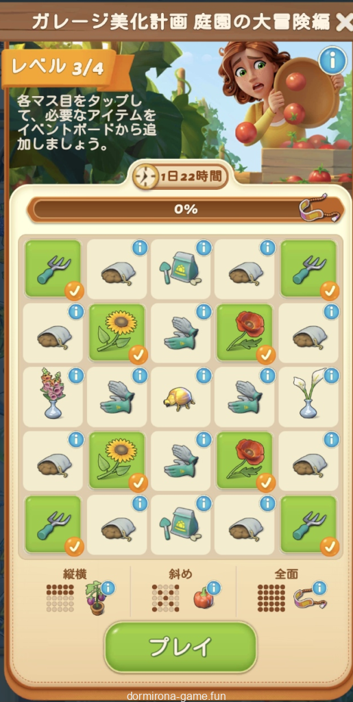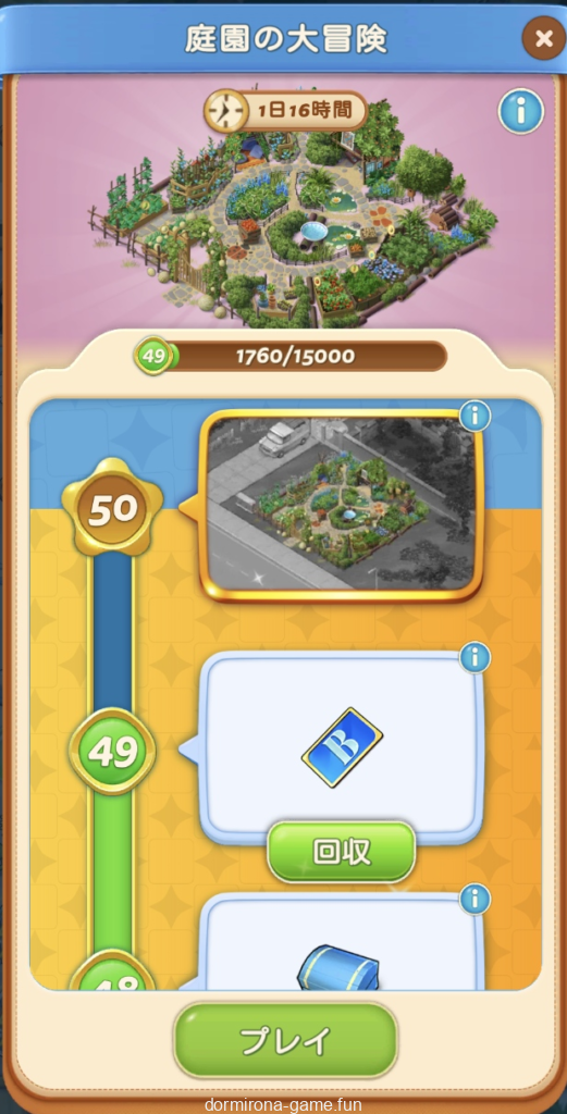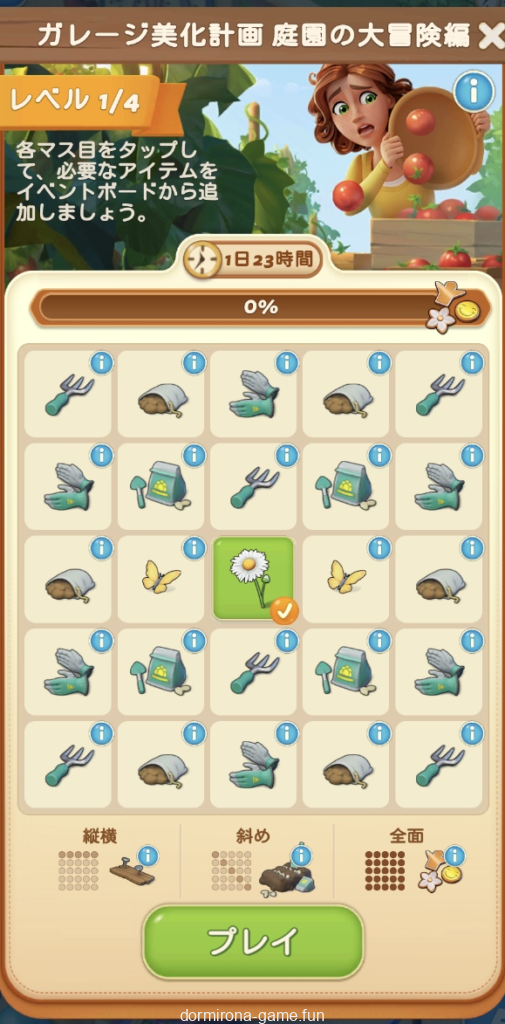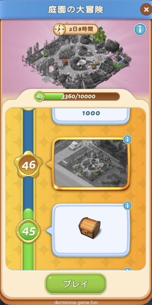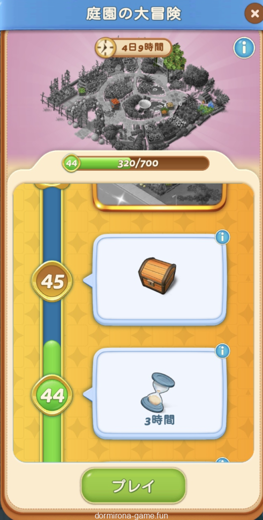 ストックを使い切ったので今週のデイリーチャレンジはお休み。・・・からのーメイン盤ミニイベ「庭園の遊び場」ってか。花市場の亜種?赤宝箱とブルカは惜しいけど久しぶりに楽しめてる別盤は貴重なので楽しい気持ちを優先してとりま続行。難易度チラ見する限り黄金の種とか蝶とか面倒そうだなー。
