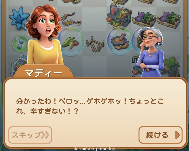 おばあちゃんの唐辛子Lv4で足止め中~。野菜や簡単なお花タスクこなしながら。