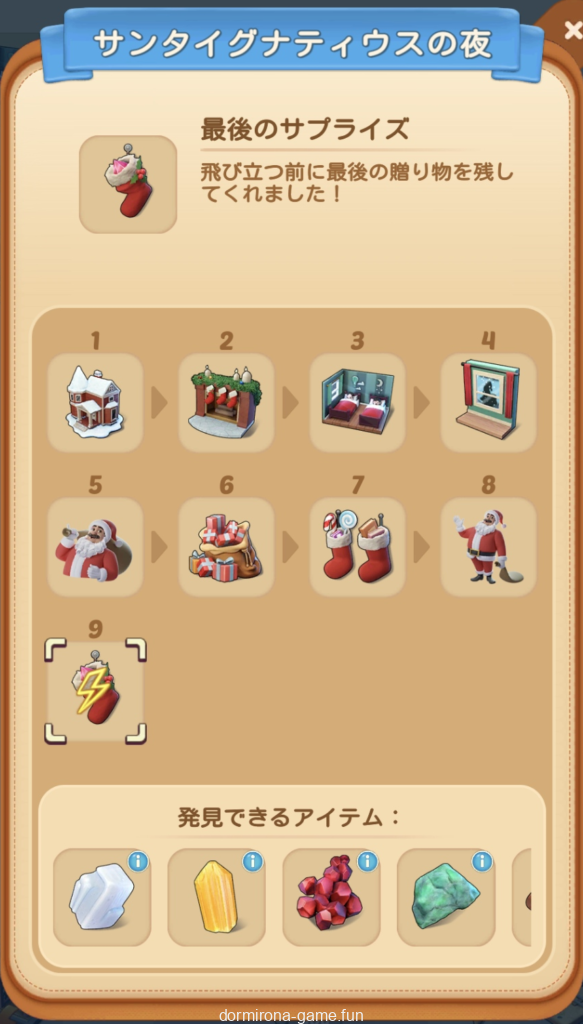 - 宝石を手に入れるときランダムでサンタイグナティウスの夜が手に入る