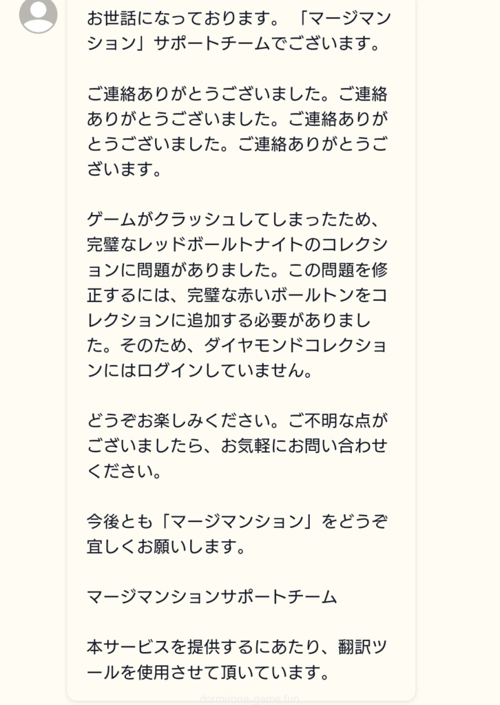 ちょっとコワイ返信が来ました。次回もう一度至高のボールトナイトを手に入れる必要があるか再問合わせしたらやはり再度入手しなければならない模様…。どれだけ時間と無限エネを使ったことやら…。