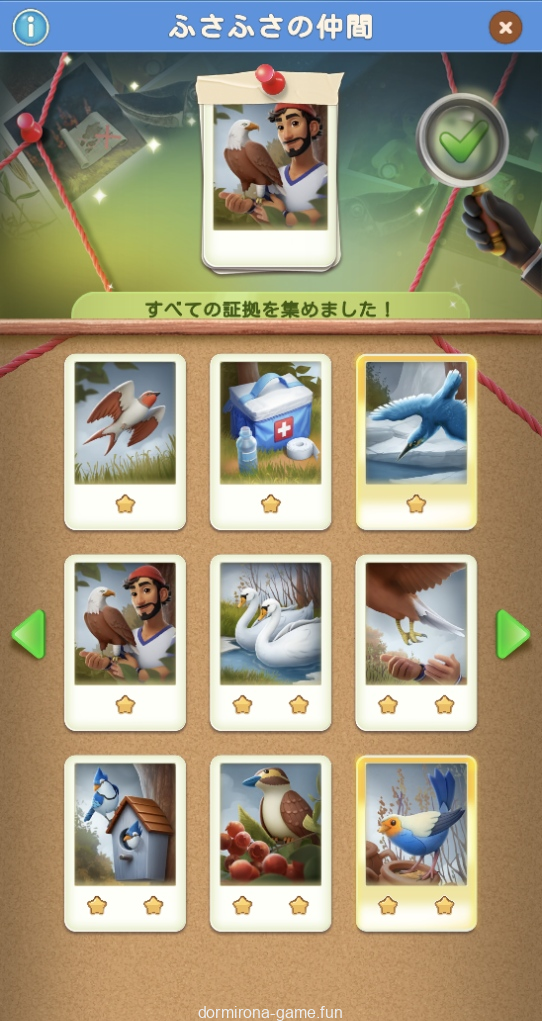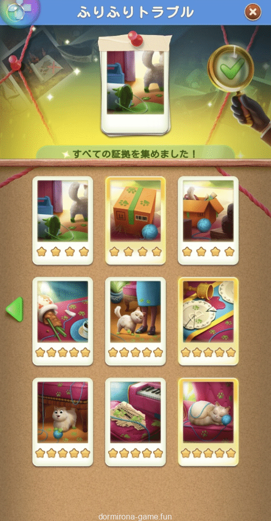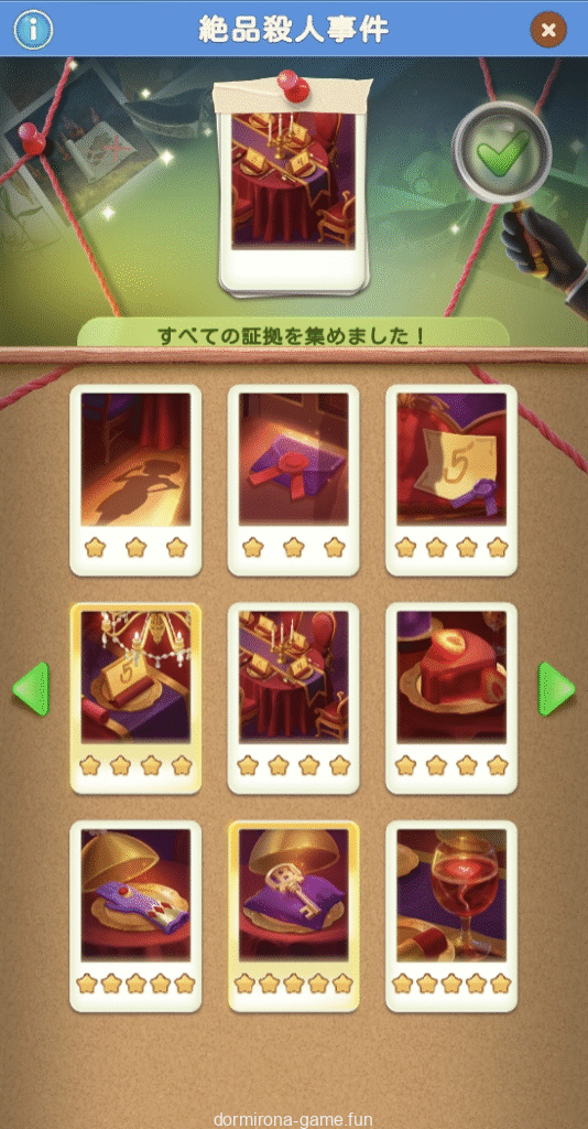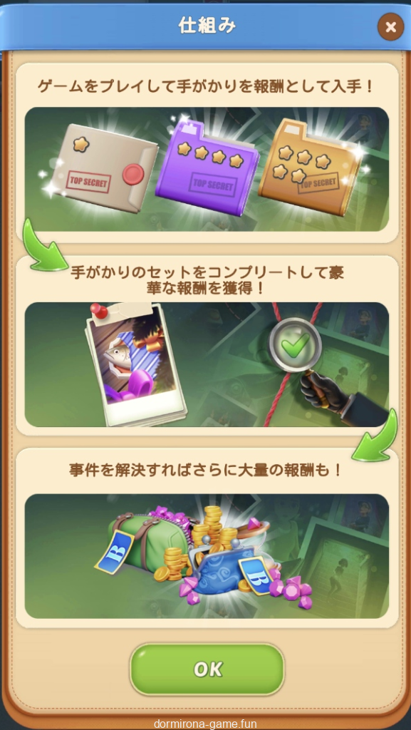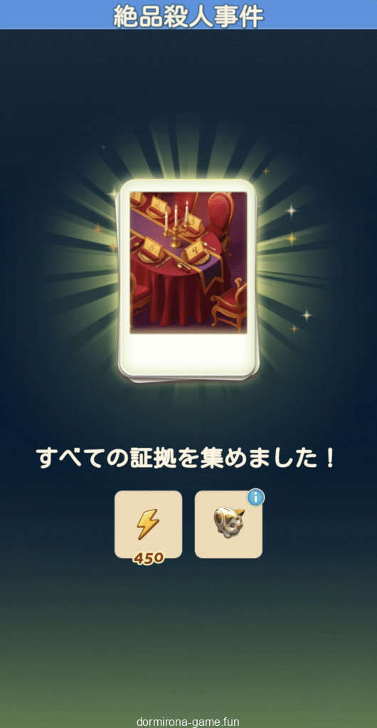 - 手がかりを集めるとセットごとに報酬がもらえる