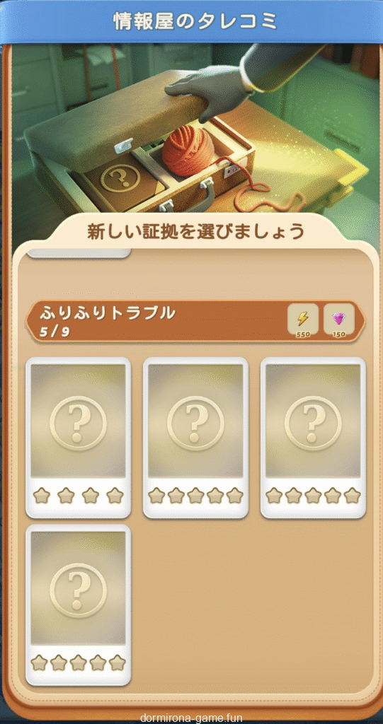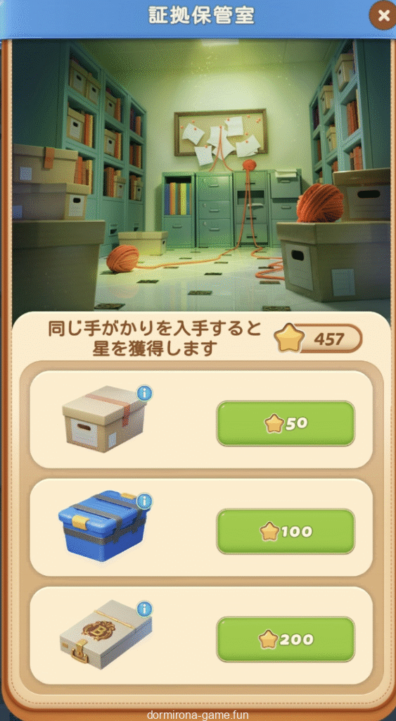 - ダブったカードのレアリティの☆の数がそのまま証拠保管庫に貯まっていきそのポイントを消費して新しい封筒に交換可能(新手がかり確定ではない)