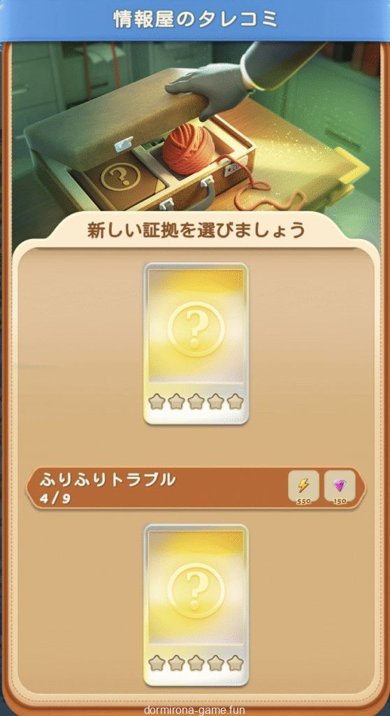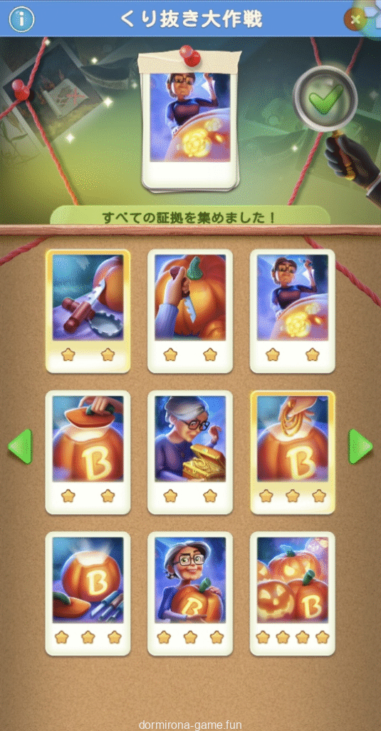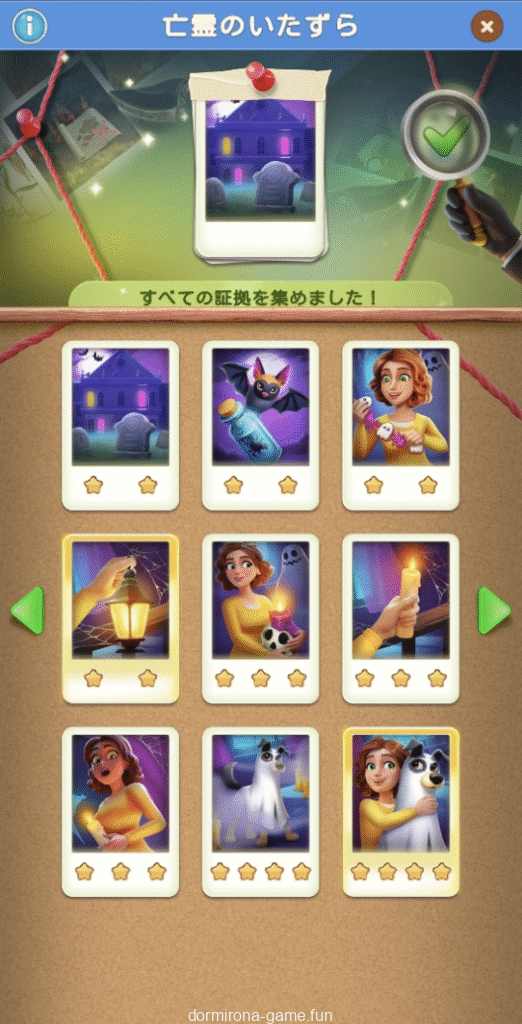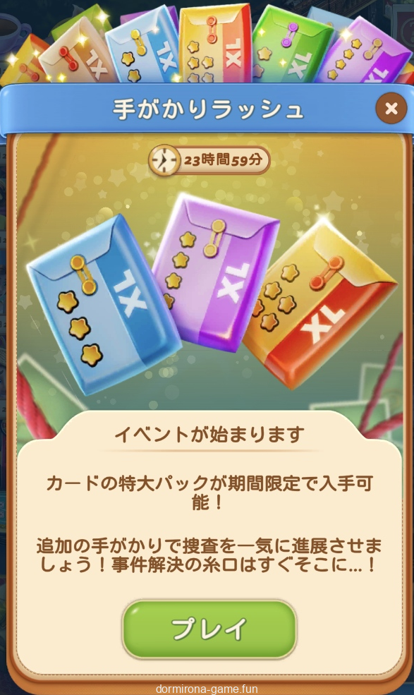 - パス、各種イベント報酬、デイリーチャンス・デイリートレードの宝箱等でもらえる封筒を集め手がかりをコレクションする