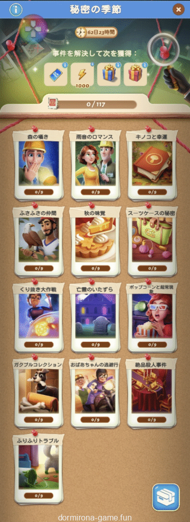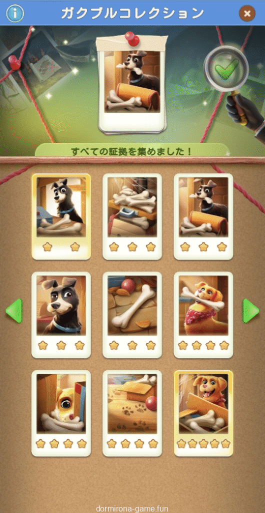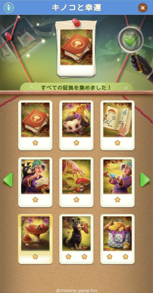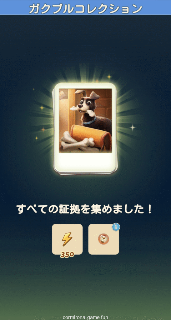 - 手がかりを集めるとセットごとに報酬がもらえる
