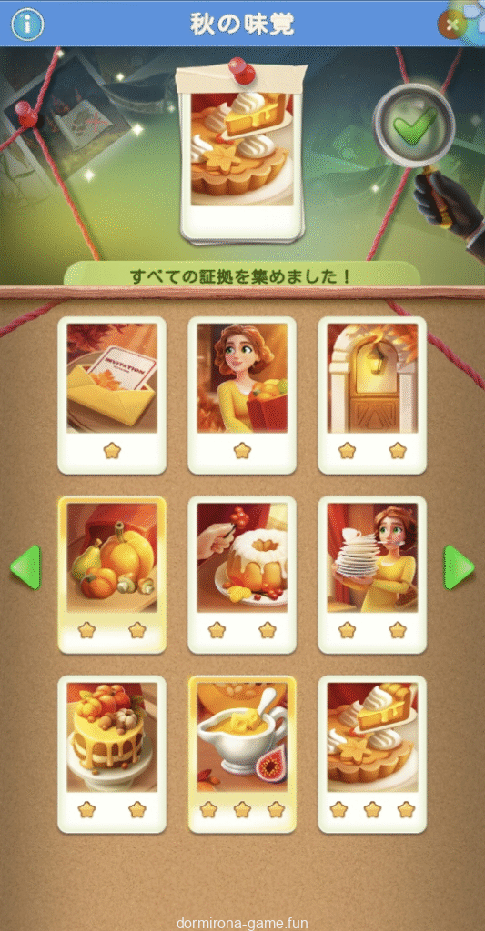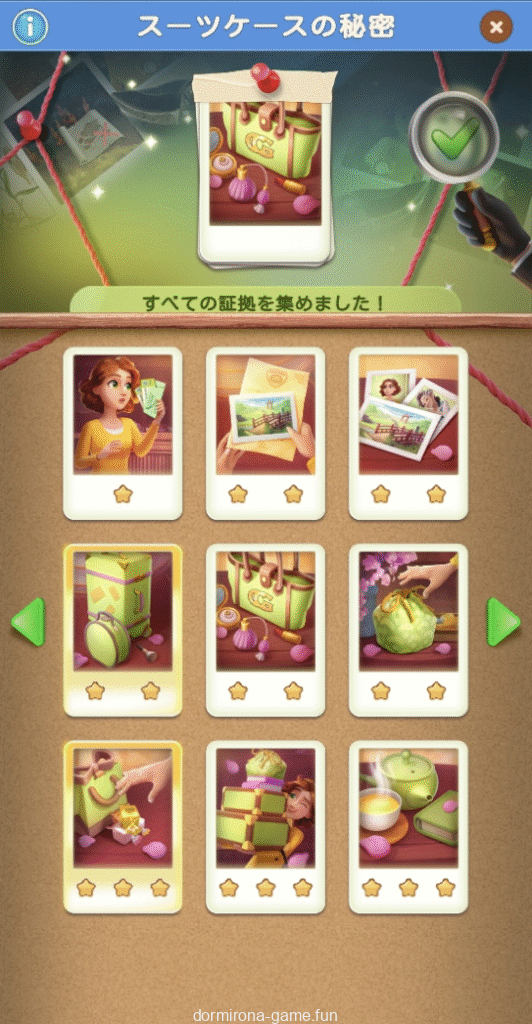 - パス、各種イベント報酬、デイリーチャンス・デイリートレードの宝箱等でもらえる封筒を集め手がかりをコレクションする