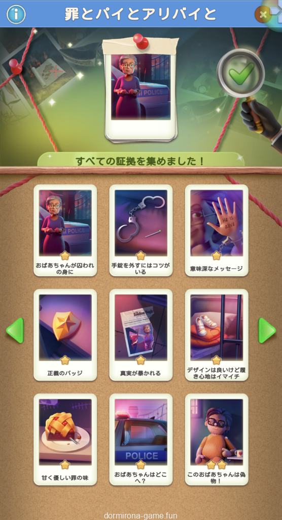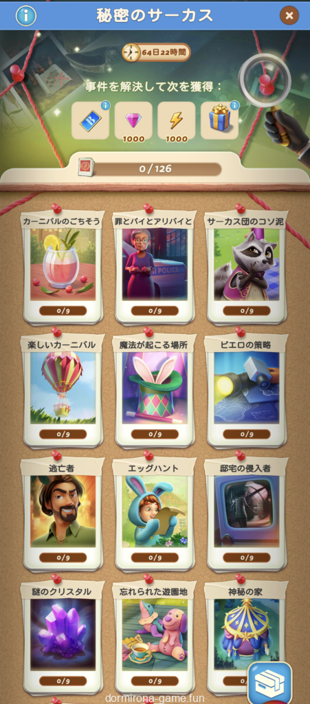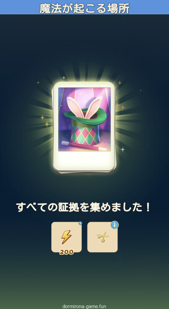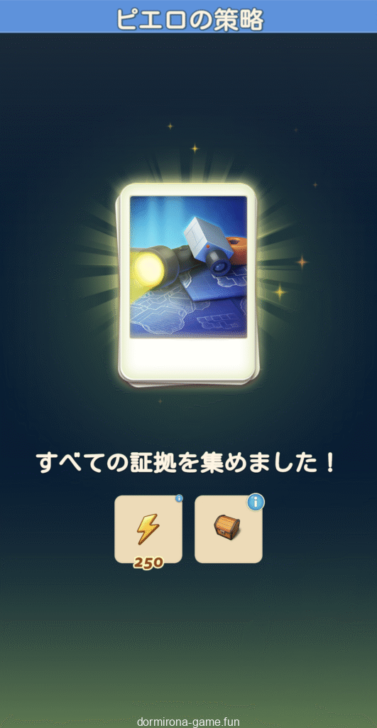 - 手がかりを集めるとセットごとに報酬がもらえる