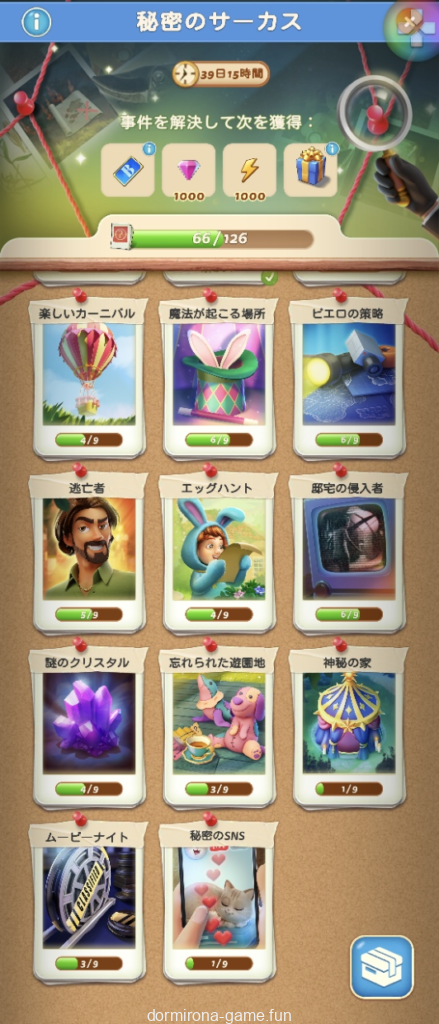 - パス、各種イベント報酬、デイリーチャンス・デイリートレードの宝箱等でもらえる封筒を集め手がかりをコレクションする