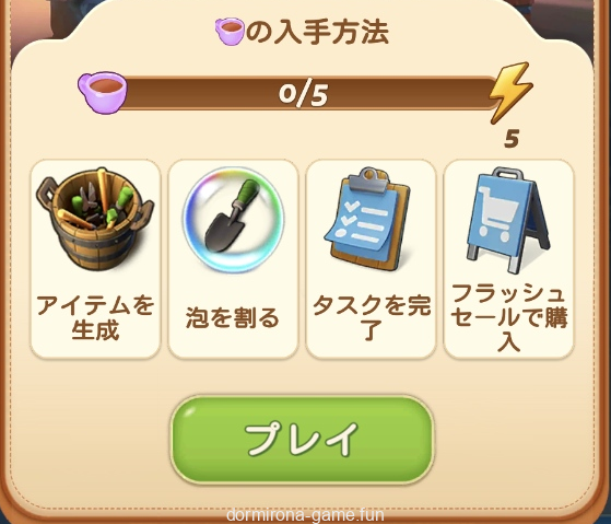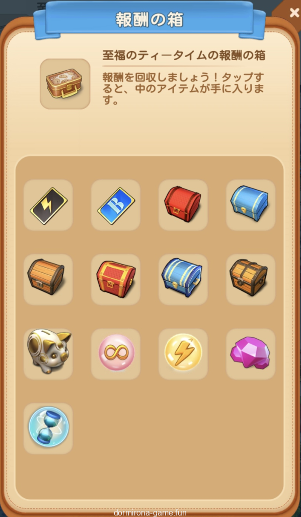 - タスクを完了 *タスクの右上にティーカップのポイント表示あり