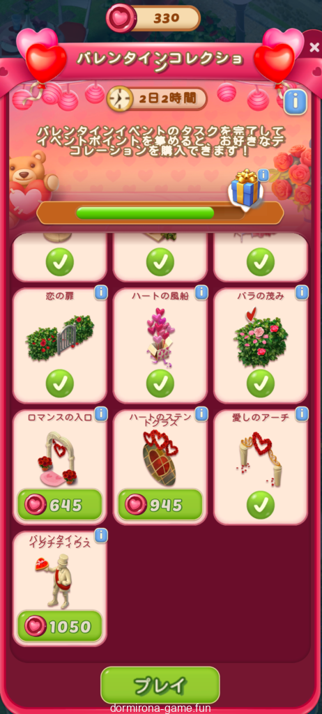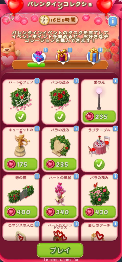 しかしこの中途半端な残りPよ…チェスはもらうにしろ、下段頑張って60P稼ぎディナーテーブルにするか欲しかったラブツリーにするか。来年はコレクション2か3にお安めに登場するとしたら200Pは誤差なような?何より疲れたw