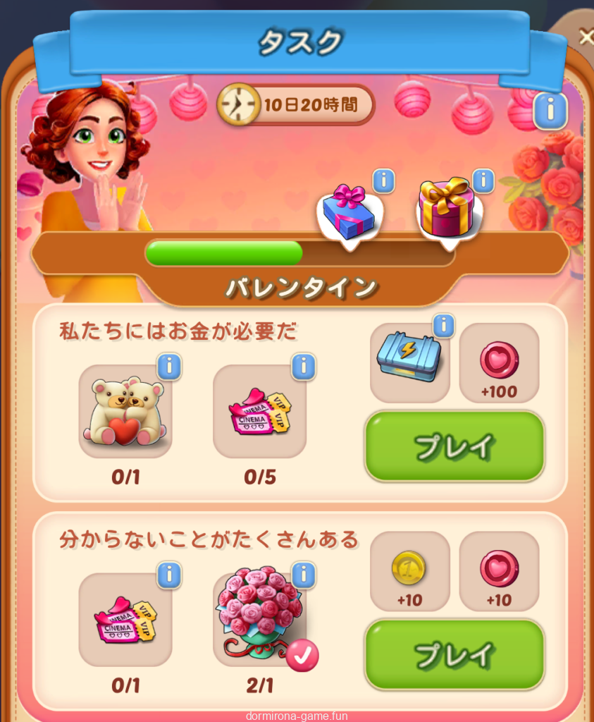 映画館8個中7個ケーキ泣 しかも場所なくて2〜3個は売ってるし。クマのは下のタスク進んだらちまちまやってるしチョコのはすぐ使ってるけど宝石時間かかるな〜。家の装飾とイグナティウスは今までのイベでも無視してきたからそれ以外コンプ目標。ブースターは一時間で足りるよなぁ。