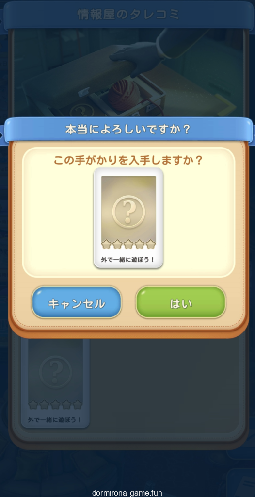 - パス、各種イベント報酬、デイリーチャンス・デイリートレードの宝箱等でもらえる封筒から手がかりを集める