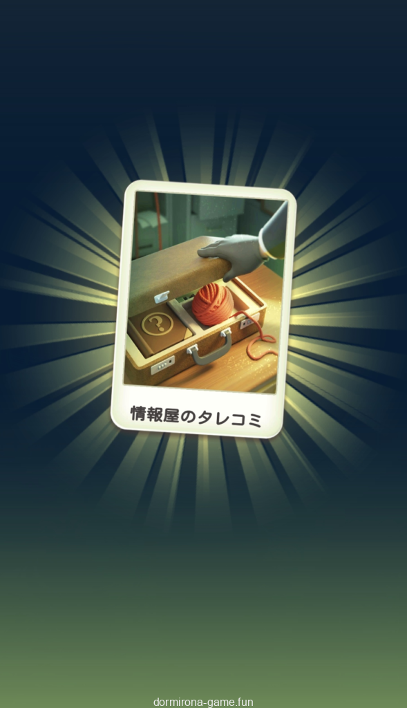 - デイリーチャンス報酬(他不明)で情報屋のタレコミを入手する