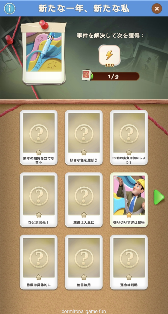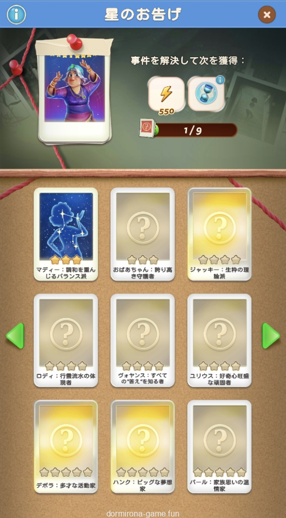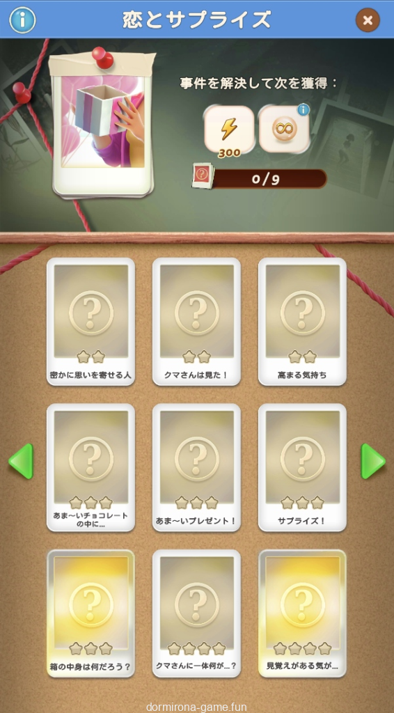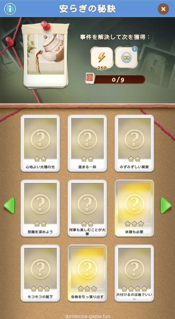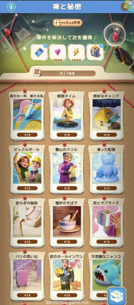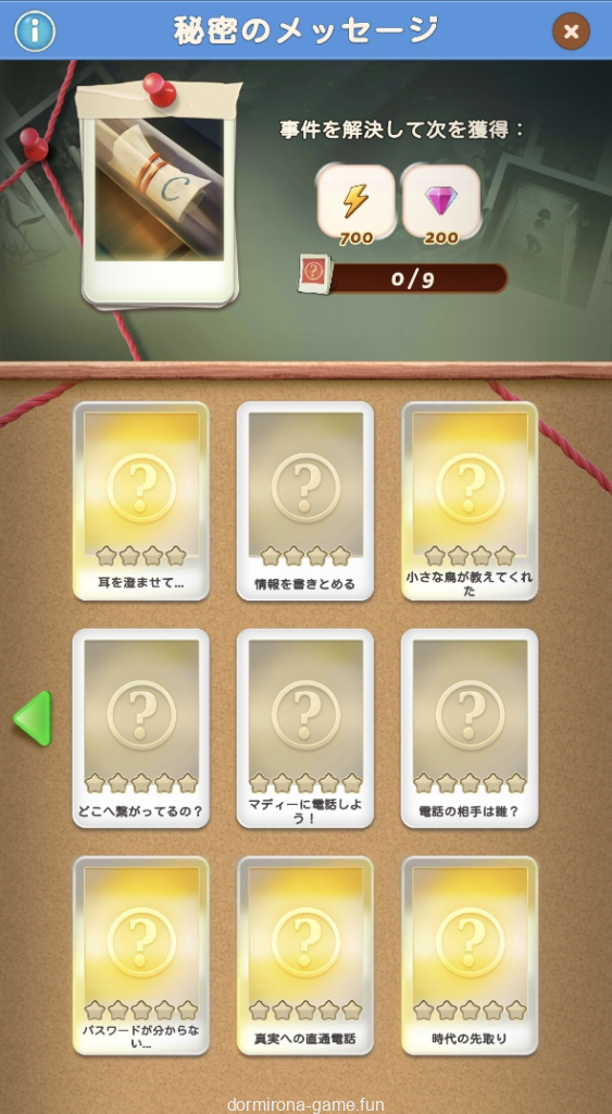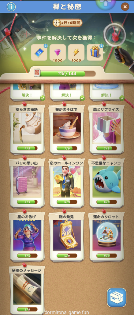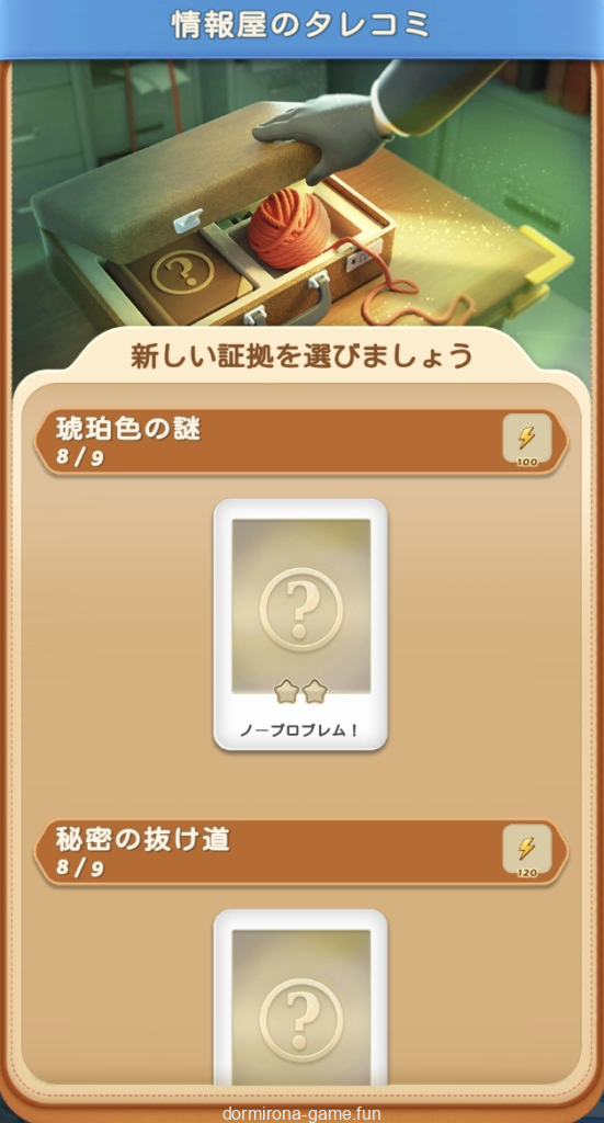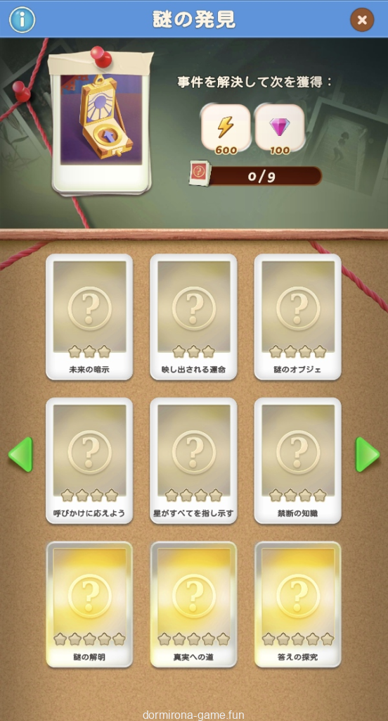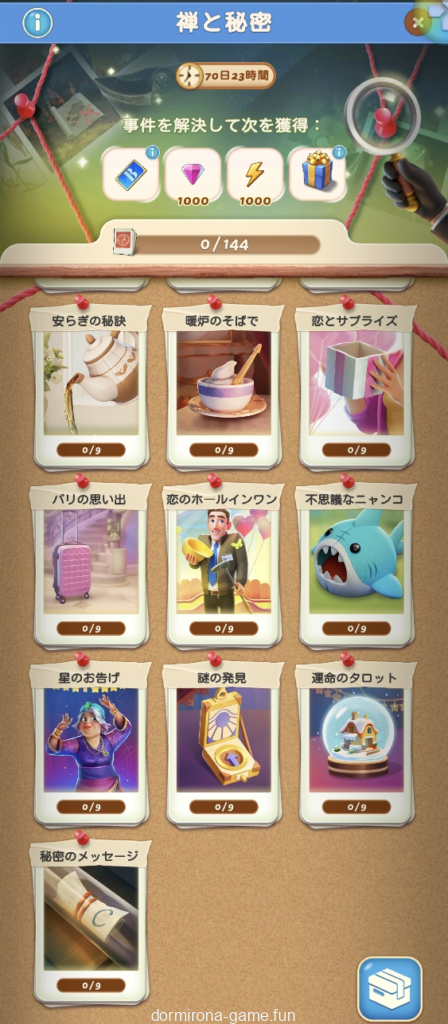 - パス、各種イベント報酬、デイリーチャンス・デイリートレードの宝箱等でもらえる封筒を集め手がかりをコレクションする