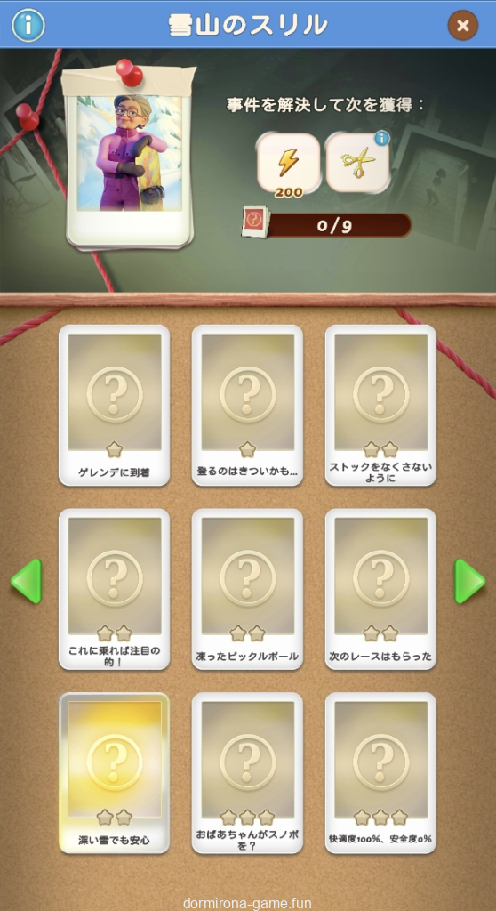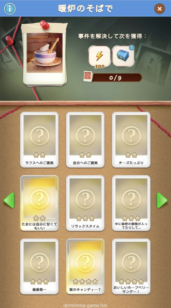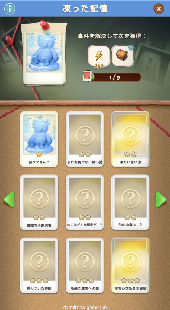 - 手がかりを集めるとセットごとに報酬がもらえる