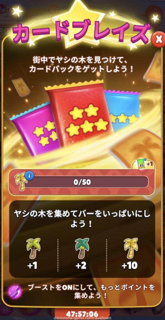• ブーストをONにしているとヤシの木がより多くもらえる