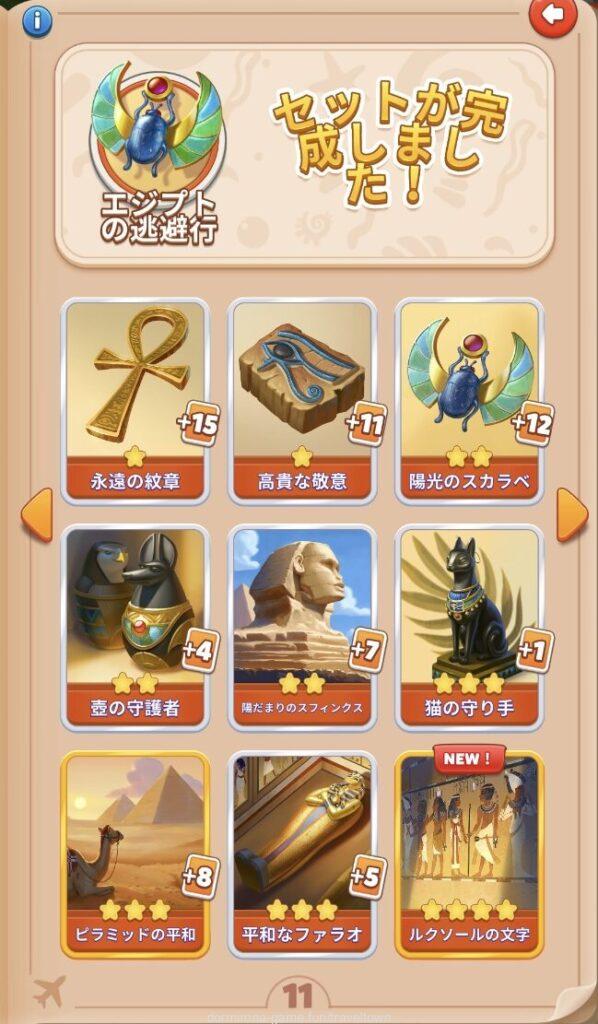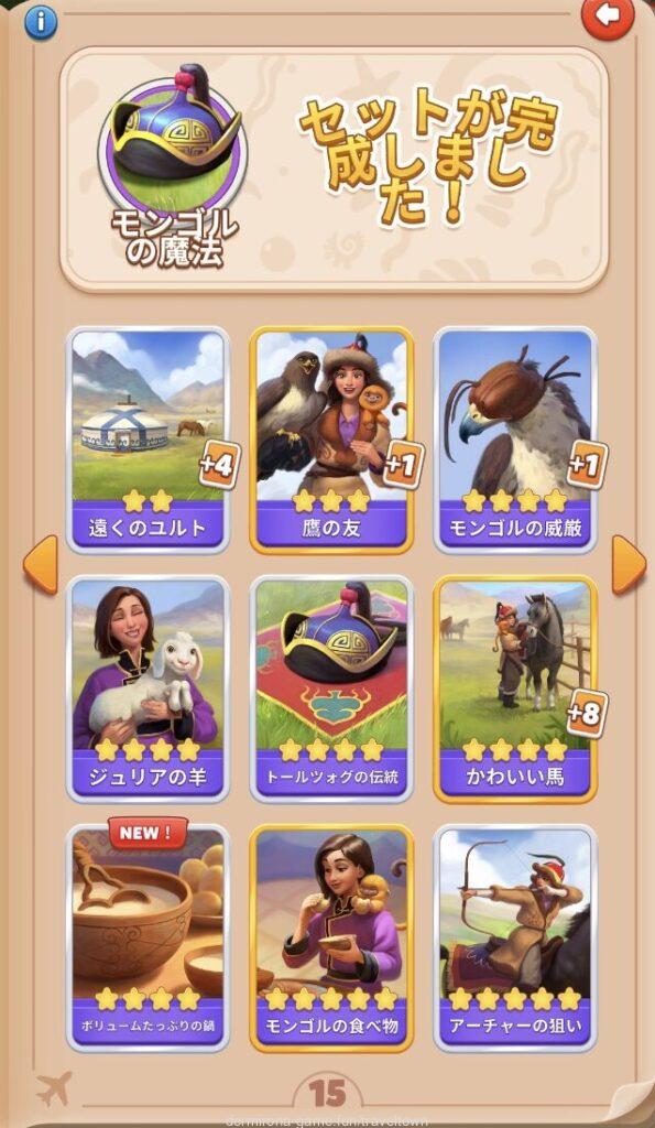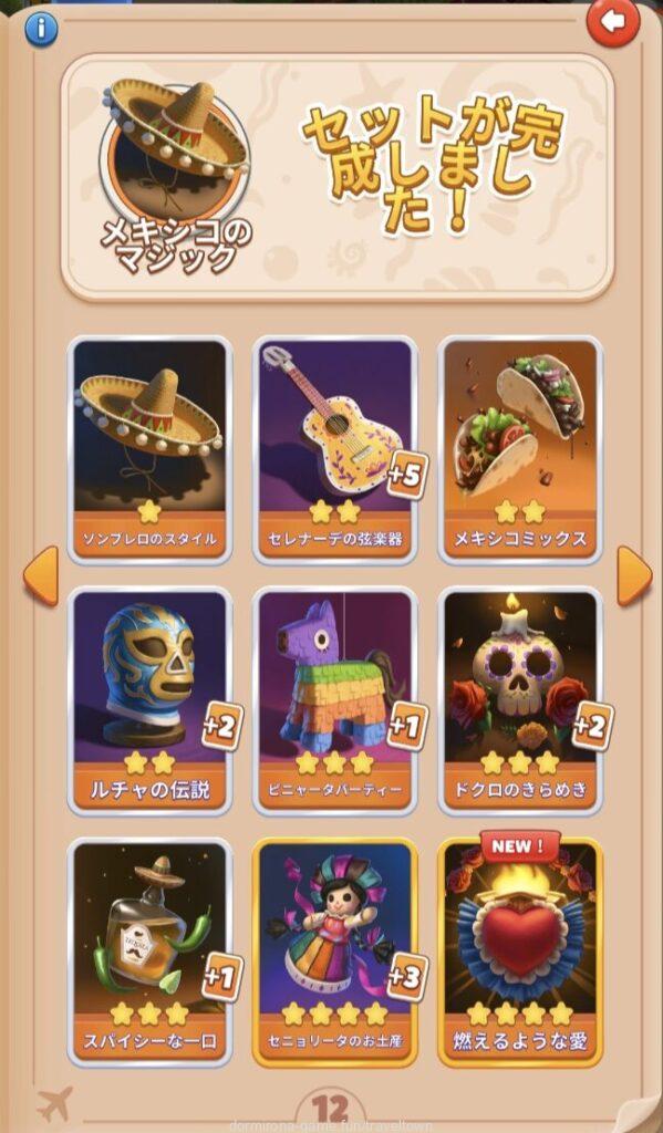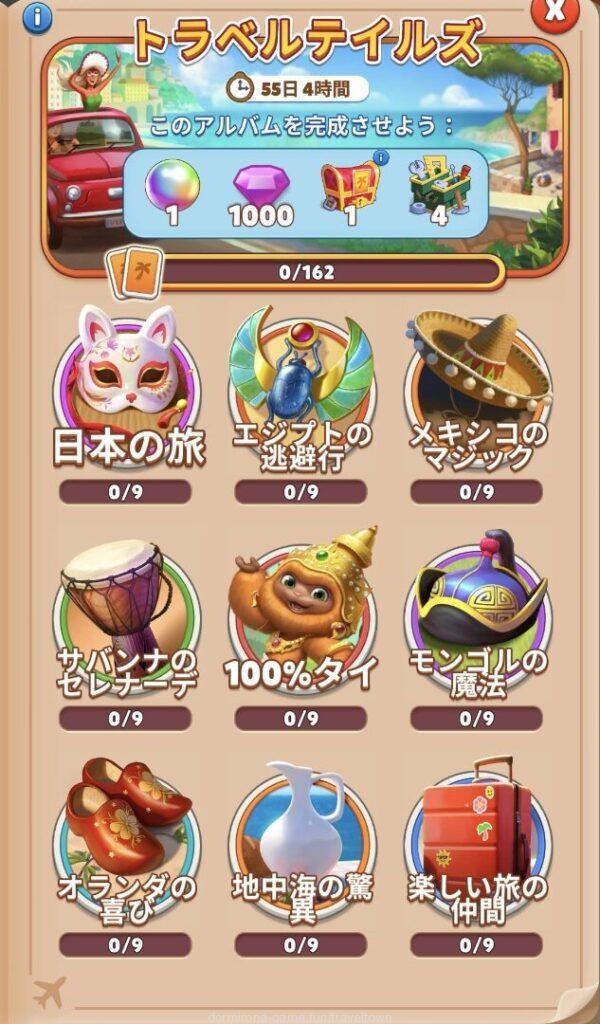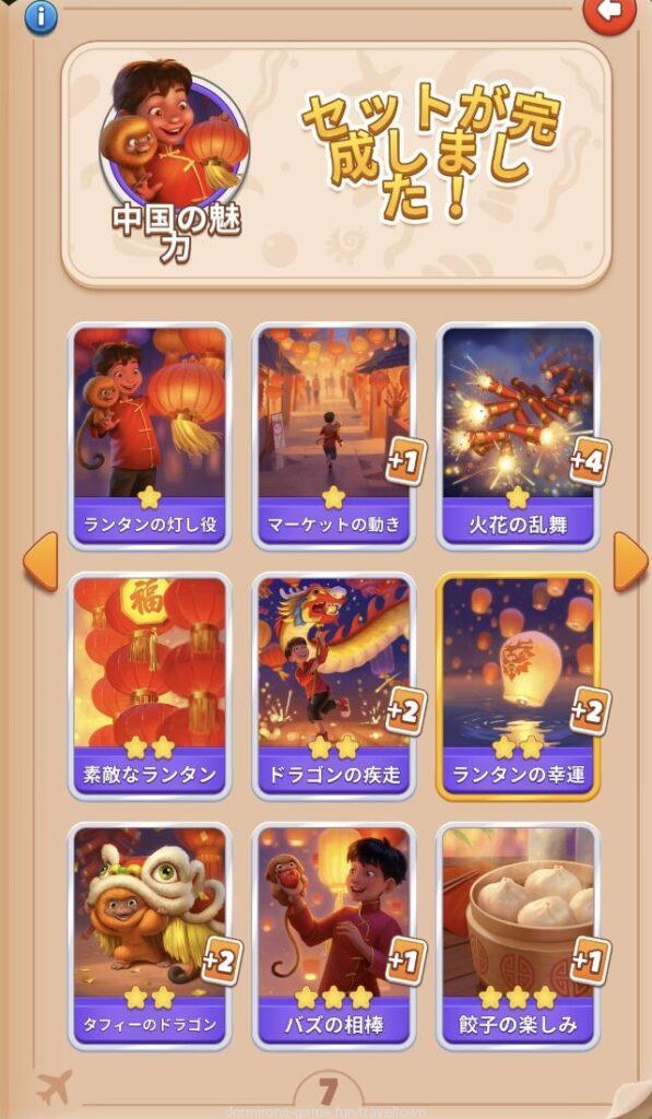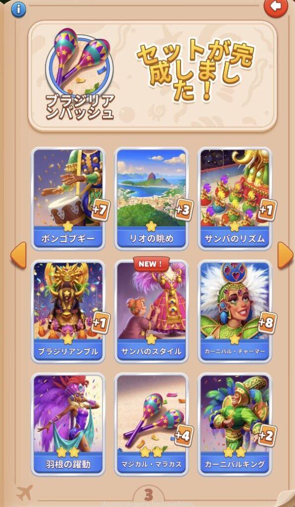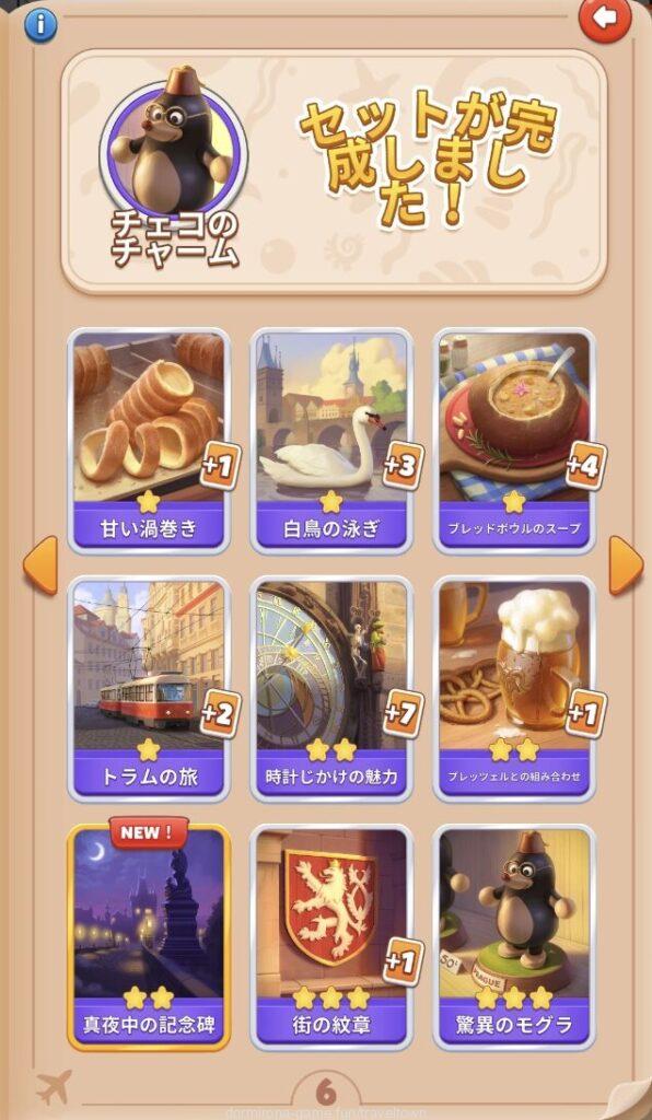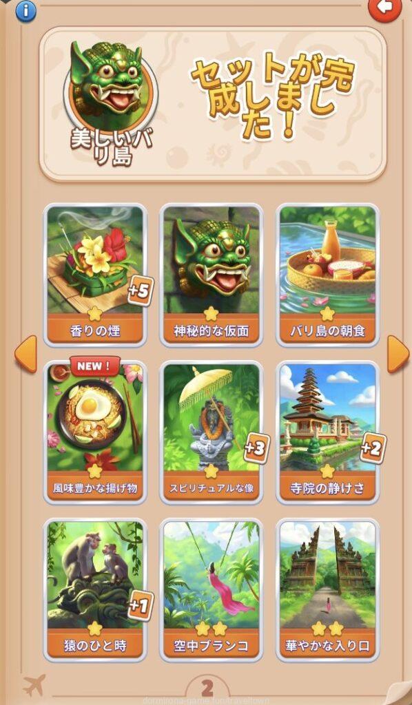 - アルバムのページごとにセットを完成させると画面上部に表示された報酬がもらえる