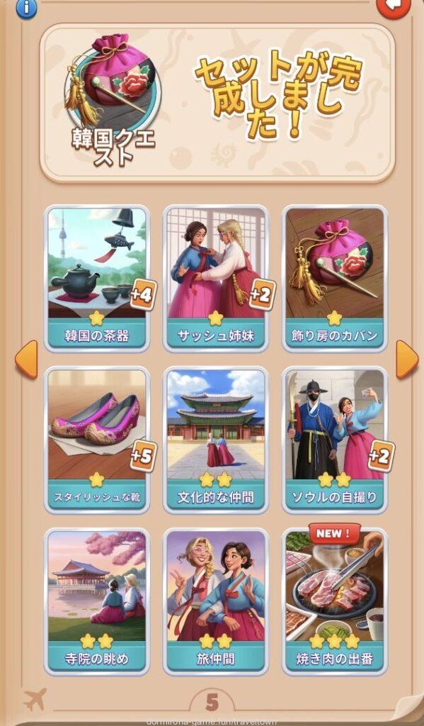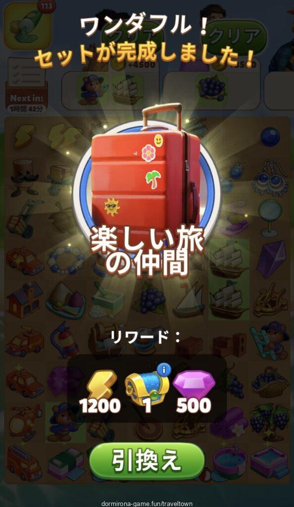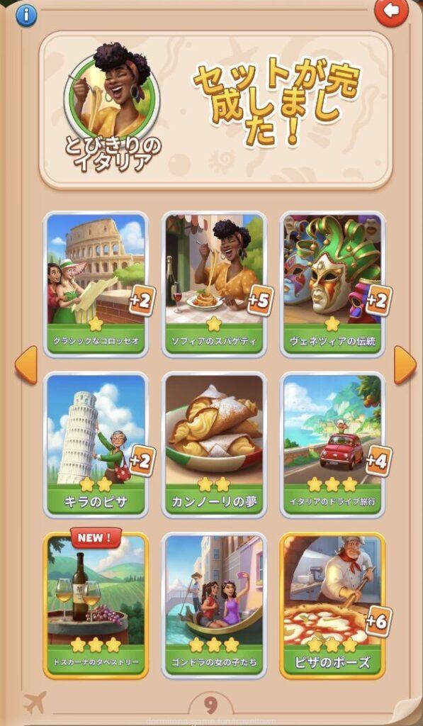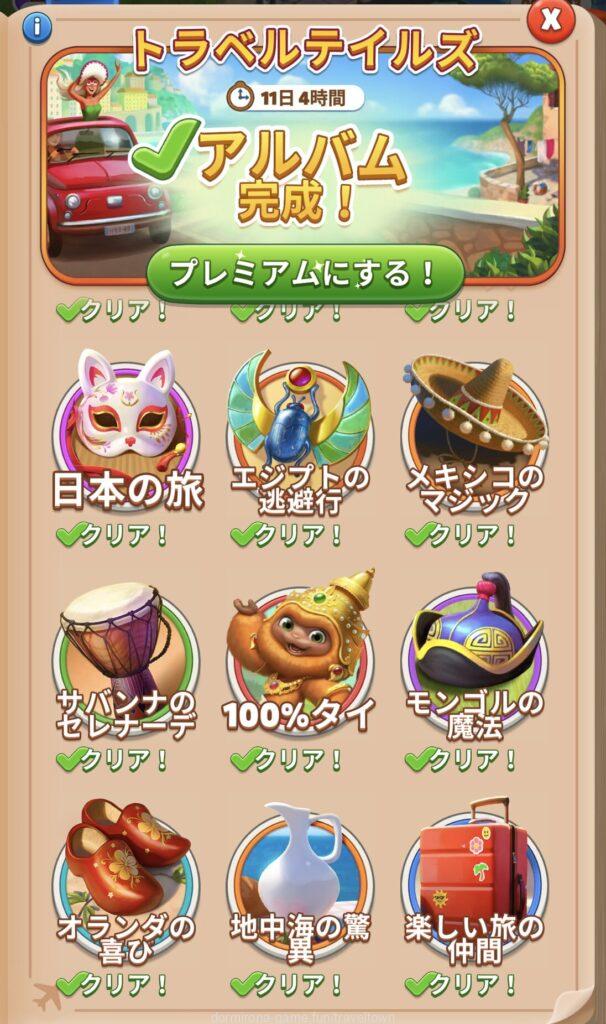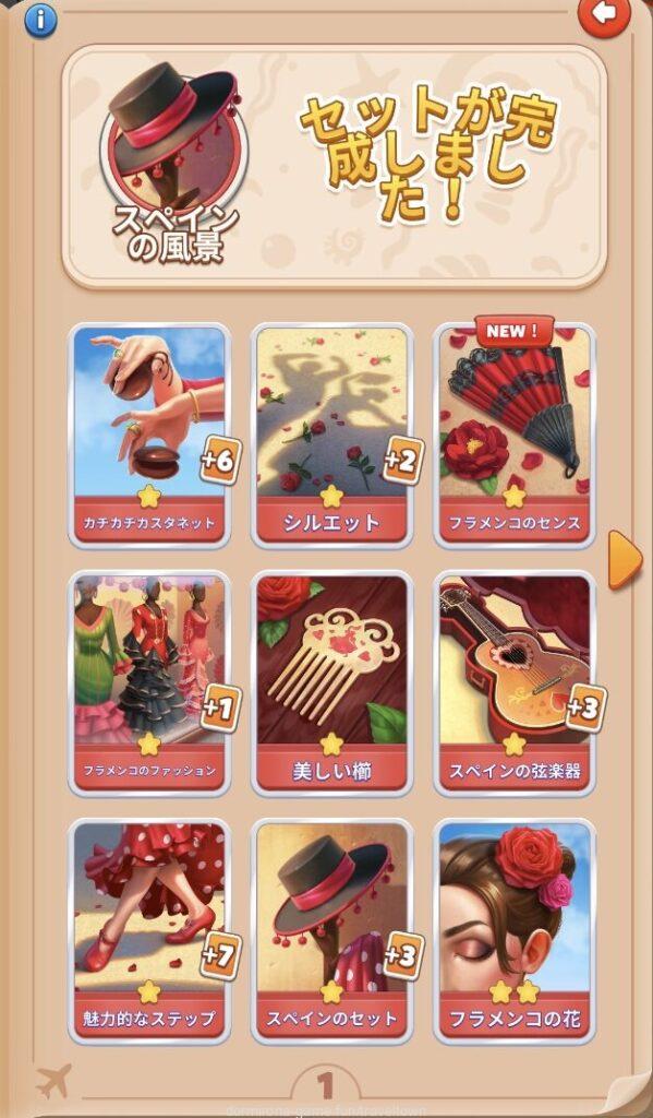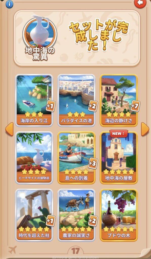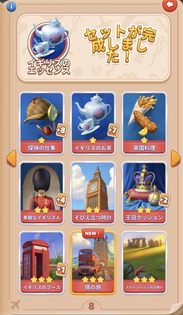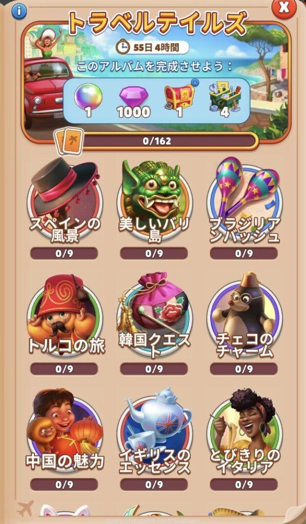 - アルバムのページごとにセットを完成させると画面上部に表示された報酬がもらえる