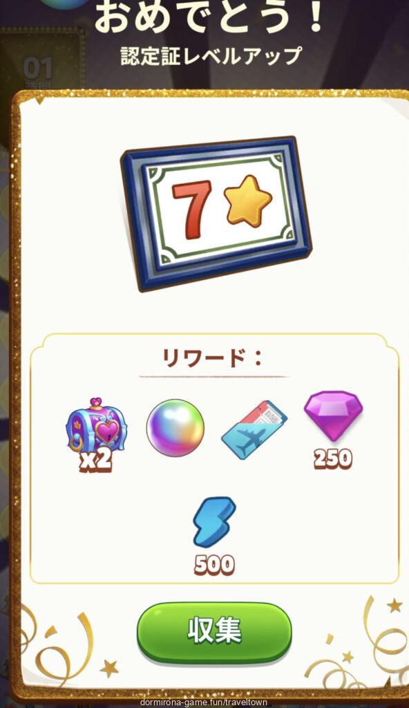- レベルが上がるごとにもらえる飛行機のチケットが盤面にある状態でTravel Townの飛行機をタップする⇒メダル、ダイヤが出る