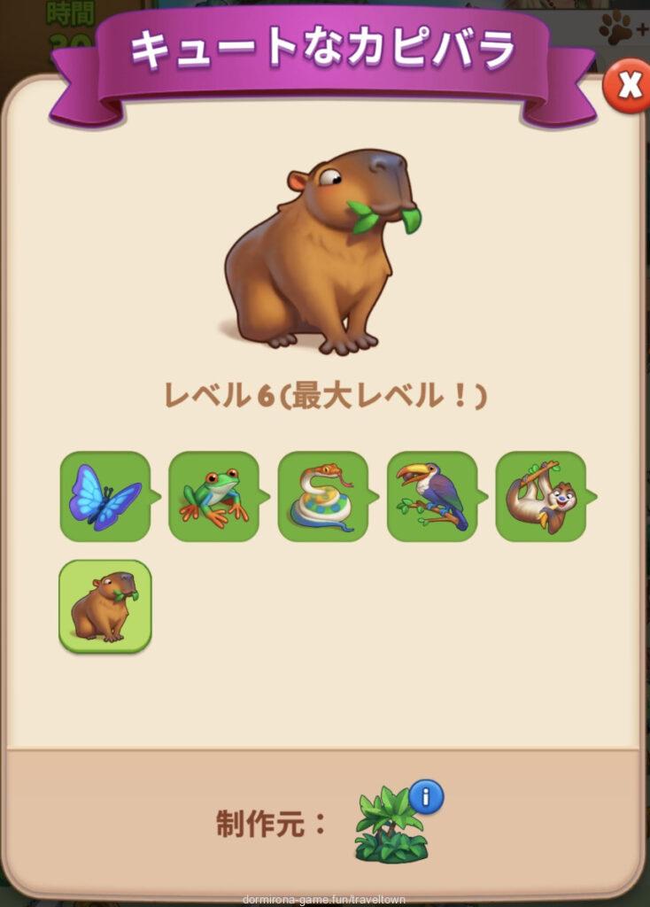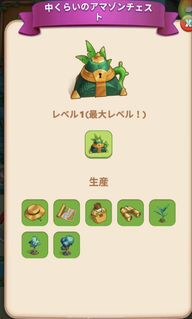 - Lv5の葉っぱに隠れているアマゾンの熱帯雨林を双眼鏡Lv6が盤面にある状態でタップすると蝶が4匹出る⇒アマゾンの動物のライン