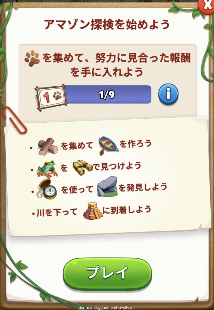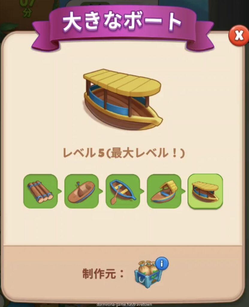 - アマゾン川に沿ってイカダで上っていくとボートになる岩にぶつかり、丸太Lv2が3個できる