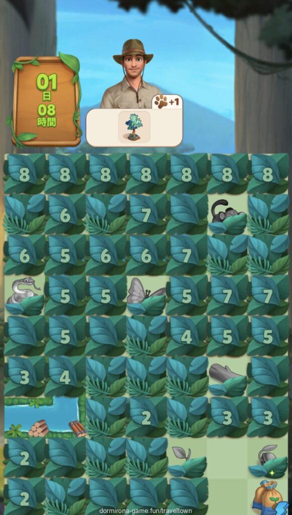 - Lv7の葉っぱに隠れている秘密の洞窟を探検グッズMAX(懐中電灯)がある状態でタップするとジャガーの子が4匹出る⇒ジャガーのライン