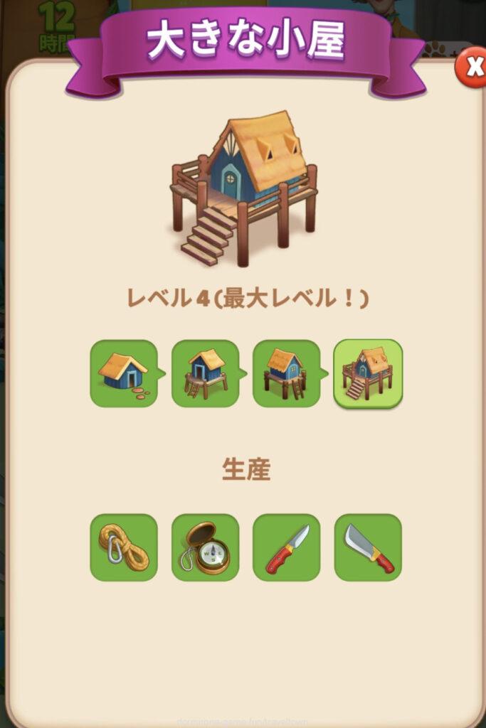 - シンプルな小屋Lv3になるとロープが出るようになる⇒探検グッズのライン