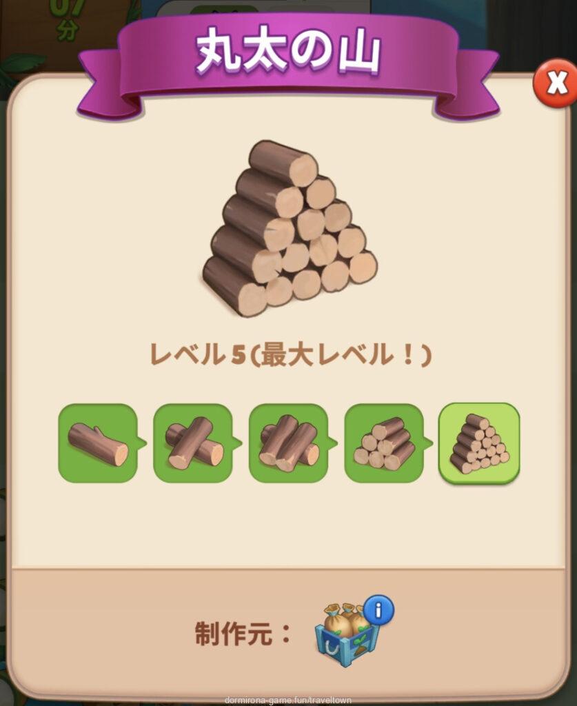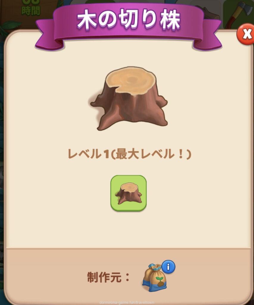 - 再度チェーンソーが盤面にある状態で切り株をタップすると丸太Lv1が2個出来る
