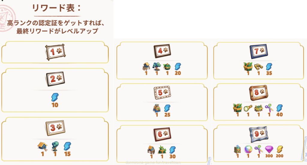- 高ランクの認定証を手に入れるほど最終リワードがレベルアップする