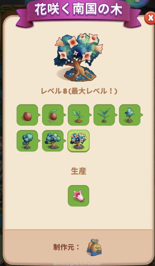 - 初期配置の種の袋Lv1からは木の種が出る⇒花咲く南国の木のライン