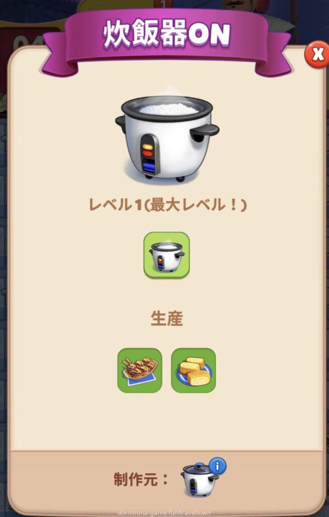 - Lv5に隠れている炊飯器OFFを調理器具MAX(おにぎり)が盤面にある状態でタップする⇒炊飯器ONになる⇒タップできるようになり(4タップ)、たこ焼きが出る⇒日本の食事のライン