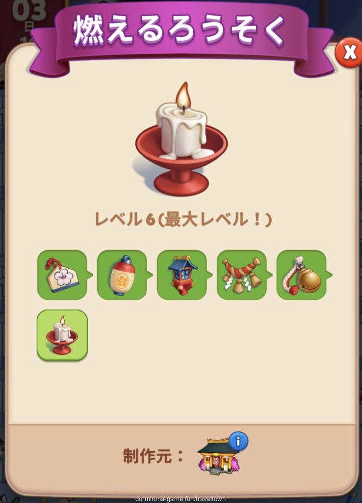 - Lv3に隠れているキツネの像を神社グッズMAX(燃えるろうそく)が盤面にある状態でタップすると電飾付きキツネの像になる⇒タップできるようになり(6タップ)キツネが出る⇒キツネのライン