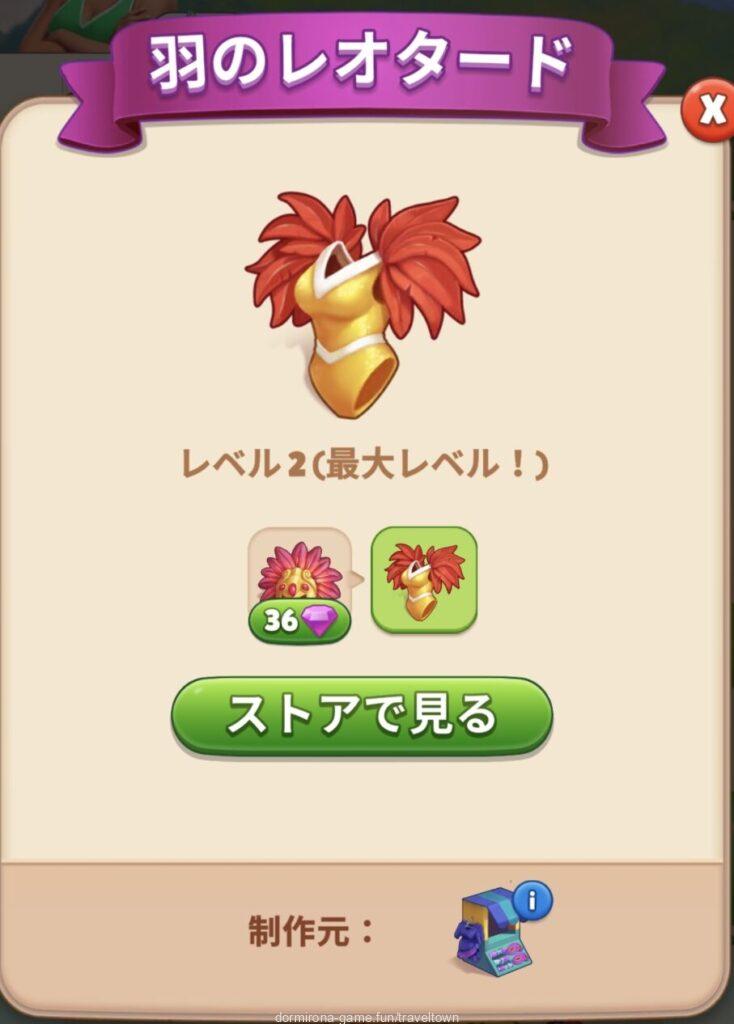 - 羽の頭飾りをマージすると羽のレオタードになる
