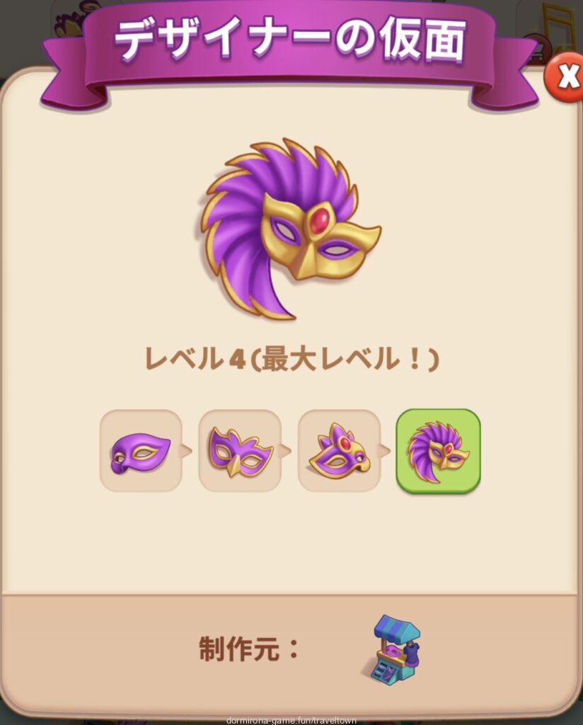 - 仮面をMAX(デザイナーの仮面)が羽MAX盤(羽の束)が盤面にある状態でタップすると羽の頭飾りになる