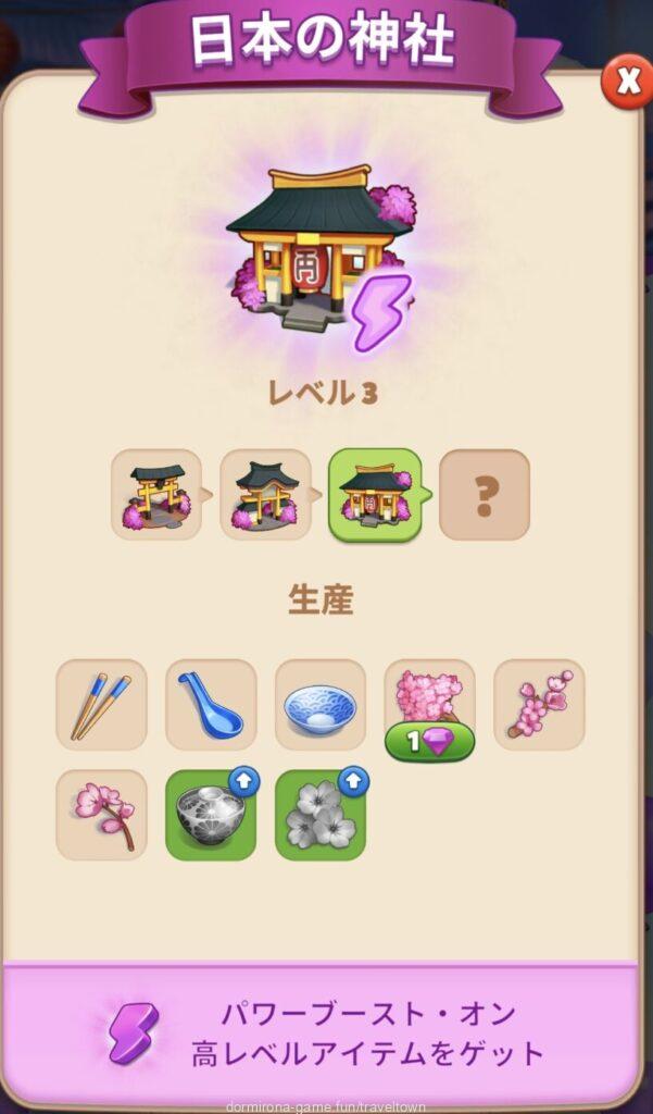 - 神社の入り口Lv2になると箸が出るようになる⇒調理器具のラインのライン