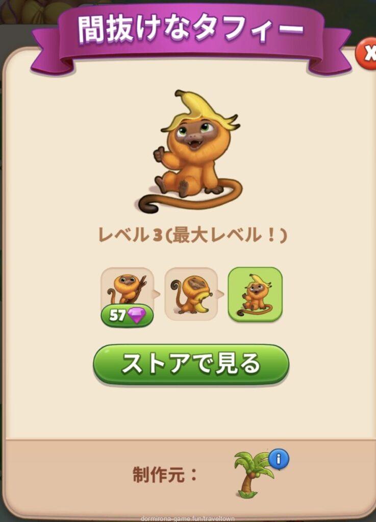 - 南国のフルーツMAX(バナナ)からはくつろぐタフィーが出る⇒タフィーのライン