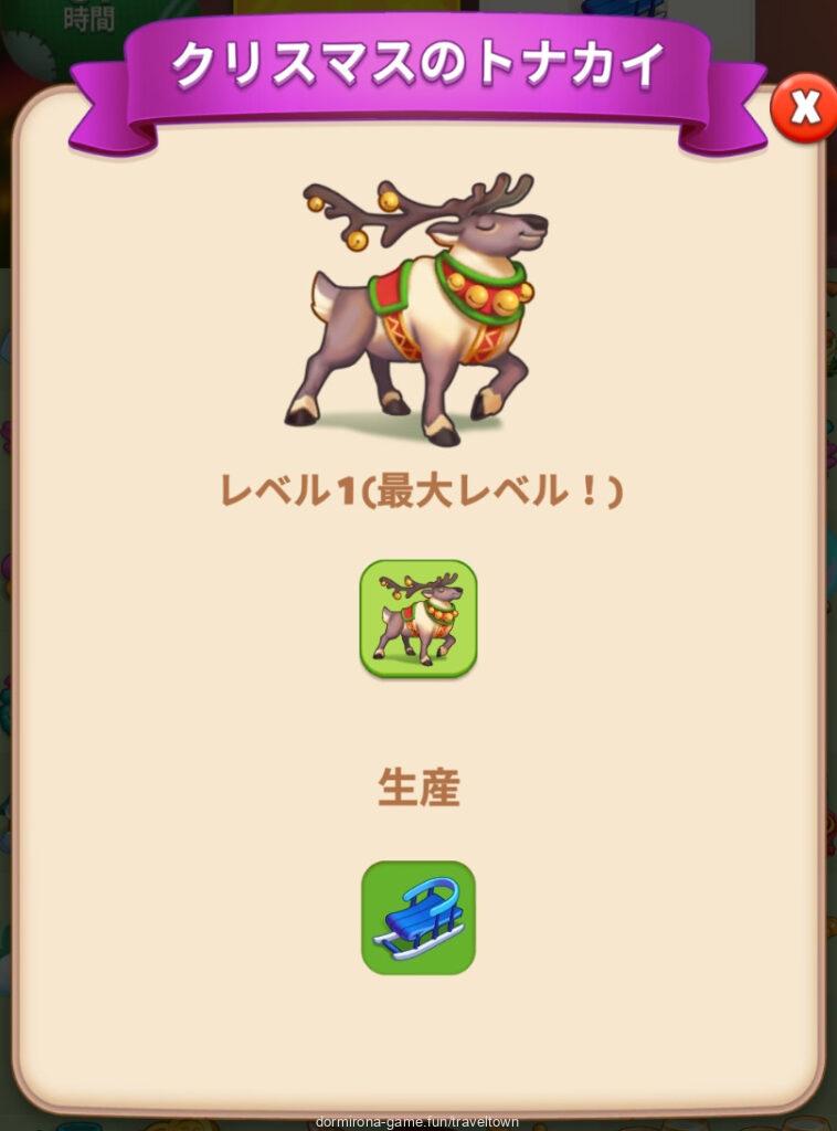 - トナカイをMAXまでマージし、新鮮な草MAXが盤面にある状態でタップするとクリスマスのトナカイになりタップできるようになる(2タップ)⇒ソリのライン