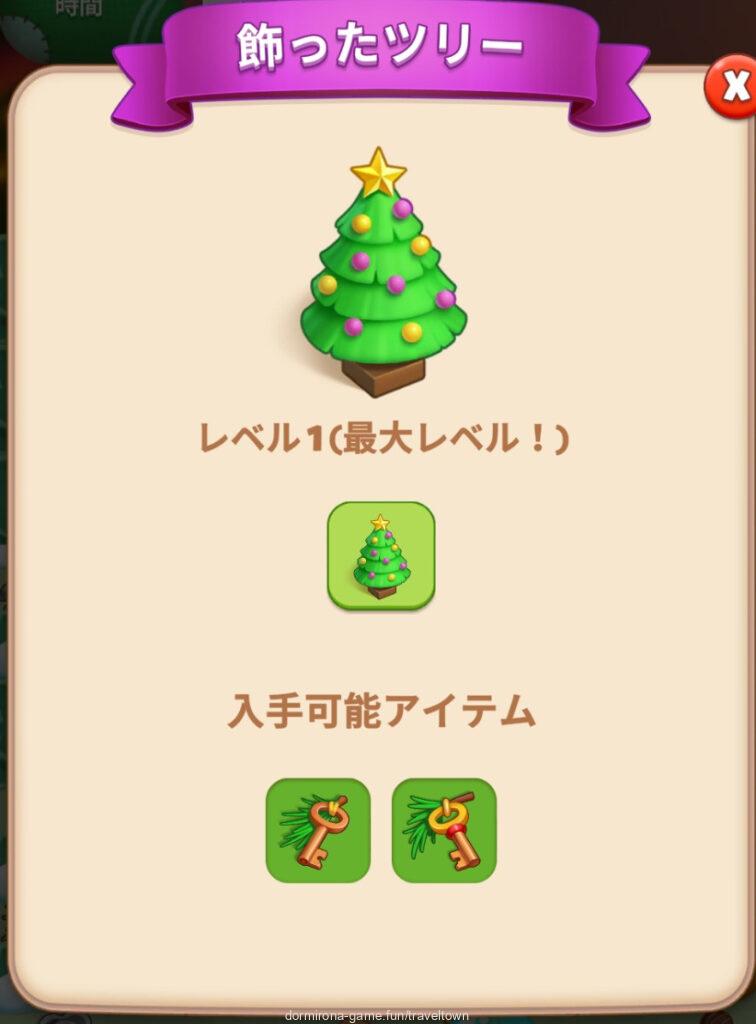 - Lv7の霜に隠れている飾りのないツリーを盤面に紙のランタンの飾りがある状態でタップする⇒飾ったツリーレベル1になる⇒時間経過でタップできるようになり、ブロンズの鍵をドロップする(6タップ)